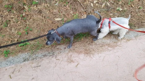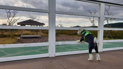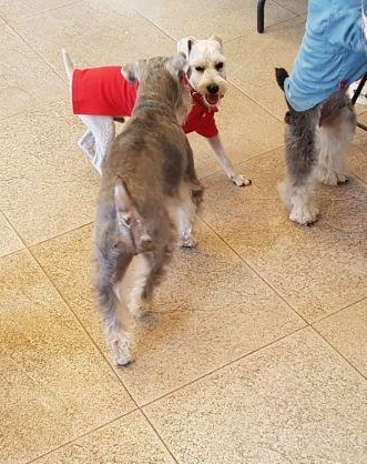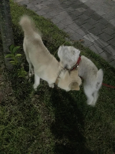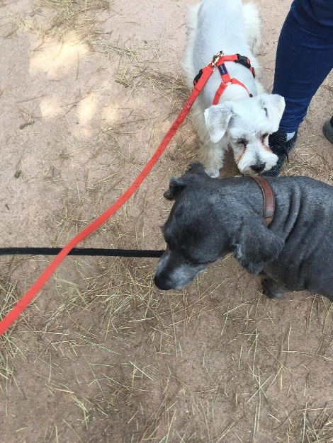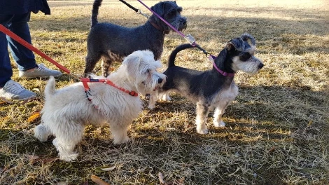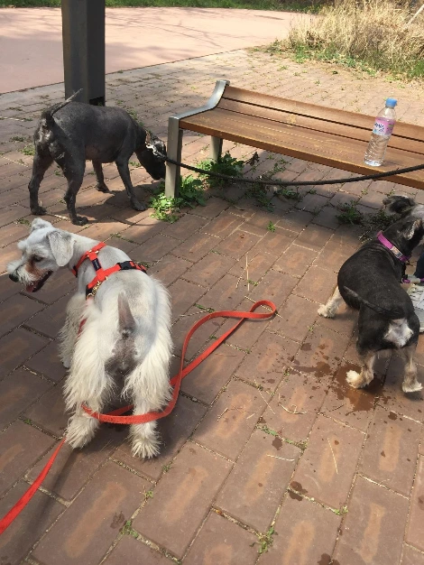 검색을 하면서 알게 된 평행산책이라는 것도 해보고 싶었는데 할 기회가 없었다. 산책 훈련에는 그림자산책이라는 것도 있었다. 물론 할 기회는 오지 않았다. 아쉬움에 입맛만 다시며 함께할 마루의 친구찾아 삼만리가 시작됐을 무렵, 같은 슈나우저인 몽이와 콩이를 만났다.