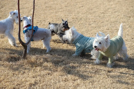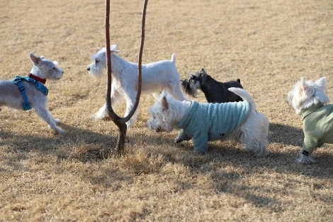 혹시나, 다른 강아지들을 만날 수 있지 않을까하며 자주 가던 공원에서 슈나우저 두 마리와 함께 걷던 견주분을 만나 인사를 했다. 정말 반가웠다. 아이들의 나이, 성향은 중요하지 않았다. 그렇게 찾아 헤매던 산책 친구, 심지어 같은 견종이었으니 바랄 나위가 없었다. 드디어, 만났다. 다행히 몽콩이의 보호자 분은 마루를 귀여워하며 예뻐해 주셨고 마루에겐 그렇게 개 형과 개 누나가 동시에 생겼다. 마침내 마루에게도 시간 맞을 때마다 같이 산책하며 여러 가지를 공부할 산책 친구가 생긴 것이다.