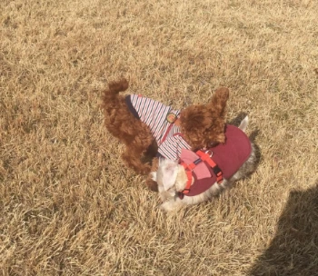다행히 근처에 사는 초코푸들 깐초가 있어 함께 풀밭을 뒹굴 수 있었다. 마루는 3개월, 깐초는 8개월 무렵이었다. 처음 깐초는 마루랑 잘 어울려 주었다. 그러다 마루의 어떤 점이 마음에 들지 않았는지 마루를 향해 짖기 시작했고 결국 함께 산책을 하지 못 했다. 야심차게 시작한 산책 친구 찾기 계획은 처음부터 커다란 암초에 부딪혔다. 동네를 산책하면서 만나기는 힘드니까 강아지 운동장이란 곳을 찾아 가기도 했다. 그러나 그 곳에서 만난 강아지들은 마루와 놀아주지 않았다. 마루가 냄새를 맡으면 고개를 돌리거나 바닥에 엎드려 버렸다. 왜지? 뭐가 문제지? 마루가 뭘 잘못하고 있는 걸까?