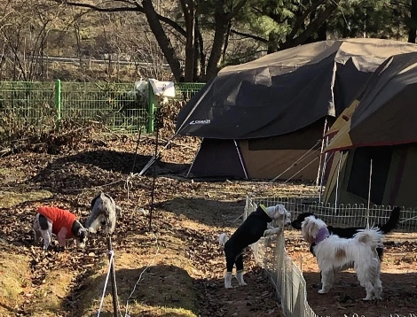 신나게 노는 마루를 보며 다른 강아지들을 보러 가는 게 기대되기 시작했다. 이제까지의 노력이 헛되지 않은 것 같아 살짝 뿌듯하기까지 했다. 내려오는 길에 들른 강아지와 함께하는 캠핑장에서도 마루는 신나게 놀았다. 혼자 이 곳 저 곳 돌아다니며 다른 강아지들에게 다가가기도 하고 그들이 경계하면 돌아서 나올 줄도 알았다. 그 곳에서 만난 친구들과 어울려 함께 무언가 냄새도 맡으러 다녔다. 마루는 이제 강아지들과 어울려 놀 줄 아는 강아지가 되었다. 그동안 노심초사하며 마음 졸였던 순간들이 주마등처럼 지나갔다.
