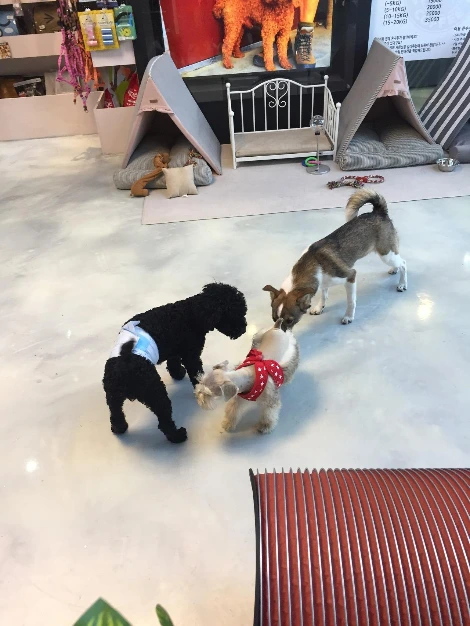 실내 애견카페는 강아지들의 친구를 만들어줄 때 가장 먼저 생각나는 장소입니다. 그러나 좁은 실내에, 다른 여러 손님들도 있어 흥분한 아이들을 통제하기 쉽지 않습니다. 또한 많은 사람들이 나의 강아지를 허락 없이 만지는 등의 행동으로 예상 외의 신경질적인 성격이 형성될 수도 있어 신중히 생각해 봄직 합니다. 돌이켜 생각해보면 많은 강아지들이 흥분한 상태에서 마구 냄새를 맡으려 달려드는 그 상황은 마루에게 몹시 공포스러웠을 것입니다.