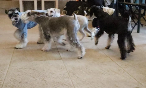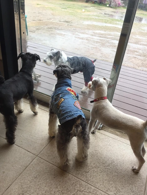 강렬했던 전용 숙소를 퇴실하고 이대로 내려가기엔 정말 아쉬웠다. 혹시, 하는 마음에 소셜 네트워크에서 알게된 분들께 연락을 돌려 비가 오는 날임에도 만남이 성사됐다. 숙소 잡기가 가장 큰 난관이었지, 막상 부딪혀 보니 강아지와 함께하는 여행은 순간 순간 놀라움과 즐거움의 연속이었다. 사진으로만 접했지, 실물을 보리라 생각도 못 했던 다른 슈나우저들과 노는 마루라니. 우여곡절이 있었지만 주어진 몇 시간동안 다른 슈나우저들과 어울려 정말 의미 있는 순간들을 보낼 수 있었다. 다른 슈나우저들과 어울리며 여러 가지를 배우고 어른 강아지들이 어떻게 노는지를 지켜봤다. 보호자들과 즐거운 이야기를 나누고 여러 조언도 들으며 새로운 간식과 장난감도 알게 됐다.