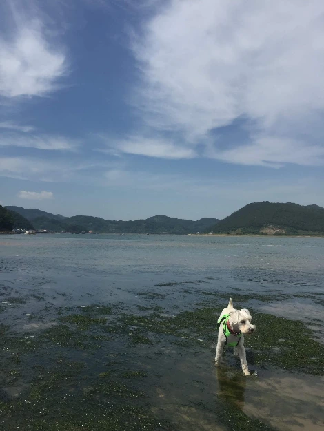 바다에서 해조류를 밟고 파도 소리에 놀라 도망가고 짖기도 하며 마루는 그렇게 자연을 배워나가기 시작했다. 바닷물을 맛보고, 모래 속에 묻힌 오징어를 파내기도 하며 새로운 환경을 받아들였다. 가까운 바다를 가는 건 그리 대단한 여행은 아니었지만 태어나 처음 해조류와 바다를 접한 마루에겐 대단한 여정이었으리라. 그렇게 마루는 바다를 여행했다. 신나게 새로운 환경을 즐기는 마루를 보며 문득 처음 접했던 운동장이 생각났다. 초등학교의 운동장은 집 앞의 놀이터와는 비교도 안되게 컸고 새로 만난 친구들이 있었으며 말하는 대로 놀이가 되는 공간이었다. 마루에게 더 많은 바다를 보여주고 싶었다. 어떤 바다는 파도가 세고, 어떤 바다엔 자갈이 있으며 어떤 바다는 발이 푹푹 빠지는 뻘이 가득하니까.