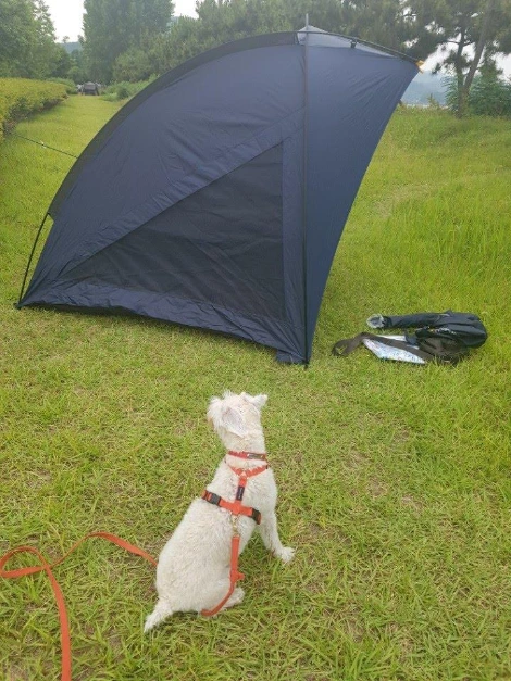 다행히 남도의 작은 도시에 살고 있었으므로 조금만 나가면 모래사장과 뻘이 있는 바다가 모두 있었고 계곡과 저수지 공원이 있었으며 등산로도 골라 갈 수 있었다. 지체없이 마루와 함께 여름 동안 다닐 수 있는 계곡과 바다 위주로 소풍을 다니기 시작했다. 사람이 없는 곳에서 잠시 마루를 뛰어놀게 하다가 잠시 쉴 요량으로 그늘막 텐트도 마련했다.
