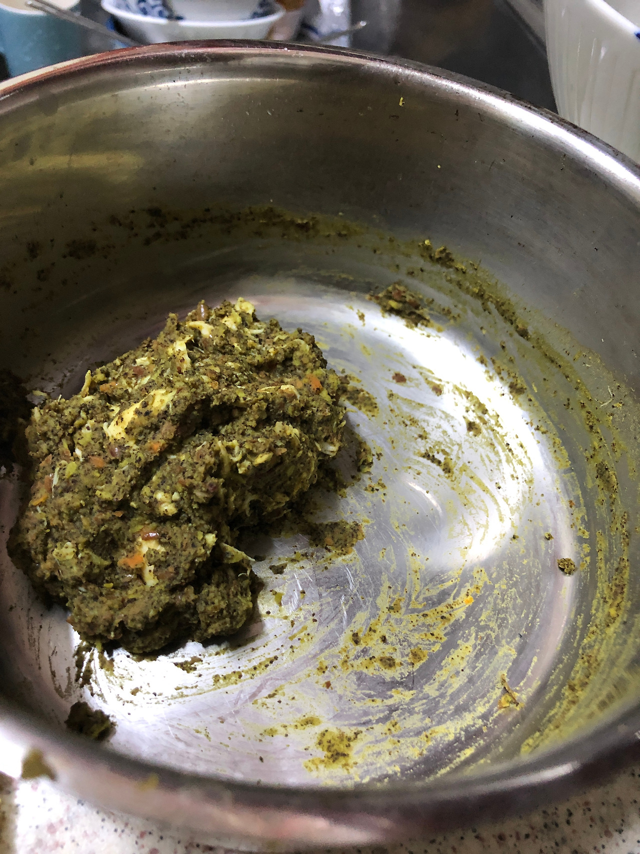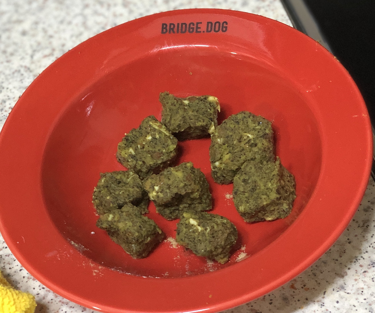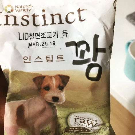 이번 밥은 아무래도 실팬 것 같다. 성분표도 꼼꼼히 보고 후기도 여러 개 찾아봤는데 가장 중요한 마루 입맛을 살피지 못했다. 아닌데, 마루 칠면조 고기 잘 먹는데. 아! 맞다. 마루는 풀 냄새 싫어하지. 이번 사료는 고기와 야채, 곡물의 밸런스가 과하게 치우치지 않고 동결건조라 보관에도 많은 신경이 쓰이지 않아 이전에 다른 동결건조 사료를 잘 먹던 기억에 주문했다. 그리고 개봉하자마자 좌절했다. 마루는 풀 냄새를 싫어하는데 이 사료는 풀 냄새가 많이 났다. 그래도 물에 개어 놓으면 구수한 냄새가 나서 쿠키를 좋아하는 마루 코를 사로잡지 않을까, 했는데 그것은 오산.