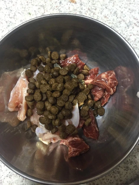 를 포기할 순 없었다. 그래서 이번엔 내장을 함께 주는 조류를 주문했다. 이때부터 마루에게 안 먹는 고기가 생겼다. 오리 도가니 뼈를 잘 먹어서 오리 고기를 샀는데 다리와 가슴살을 제외하고 남은 부위는 먹질 않았다. 꿩고기도 좋다고 해서 샀다가 냄새만 맡고 물러나 앉는 바람에 뼈를 발라 삶아줘야 했다. 대부분 많은 강아지들이 좋아하는 메추리도 몇 번 씹다 먹질 않아 남은 고기는 버렸다.
