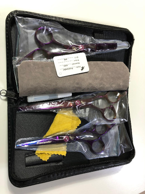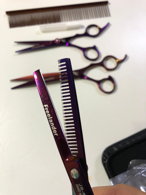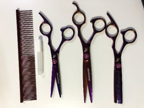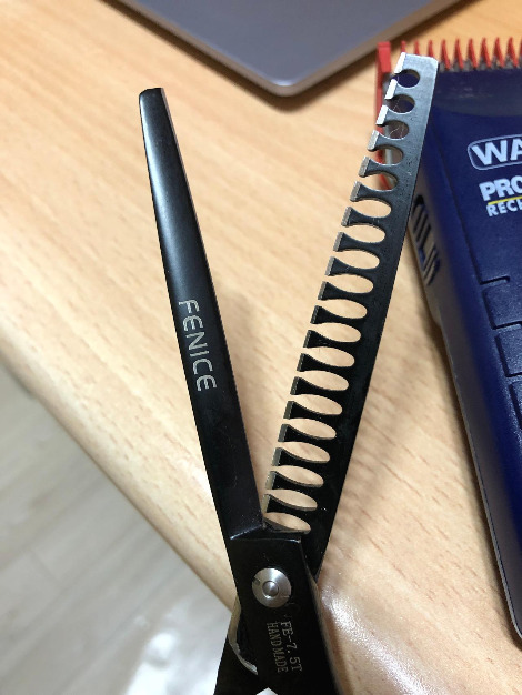 뿌듯함과 별개로 미용은 썩 마음에 들지 않았다. 생각보다 털은 잘 밀리지 않았고 얼굴은 삐뚤빼뚤했으며 가위로 자른 자리는 그 자국이 고스란히 남아 제대로 층이 나 있었다. 몸통은 3mm 날을 끼워 밀었고 다리는 6mm 날을 끼워 밀었다. 얼굴은 가위로 다듬었는데 수염에 층이 그대로 나서 누가 봐도 아무렇게나 오려 놓은 모양새였다. 가위, 미용 가위가 필요했다. 가위로 미용하는 동영상을 보며 그 생각은 조금 더 확고해졌다. 가위, 가위를 사야 해. 그런데 가위는 비쌌다. 클리퍼 세트보다 더. 포기하려다 우연히 들어간 사이트에서 저렴한 미용 가위 세트를 발견했다.