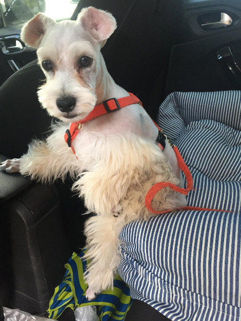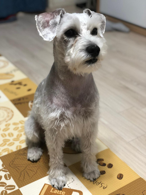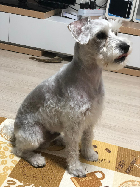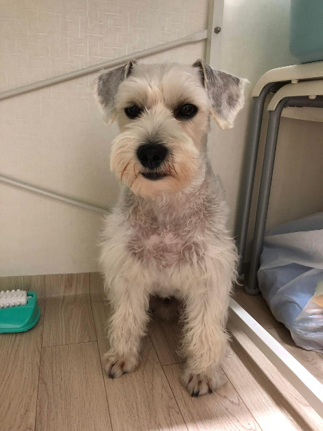두 번째 미용실은 전신을 짧게 밀지 않으면 비용이 추가됐다. 처음 계획은 다리털까지 짧게 밀어 버리는 거였지만 다른 슈나우저들이 다리만 남긴 채 미용한 사진을 보고 그 모습이 굉장히 마음에 들어 그런 미용을 이야기했다.