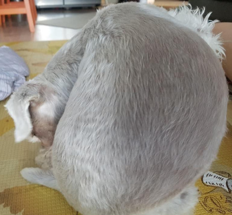 가위까지 갖춰지고 본격적인 미용을 시작했다. 옆구리와 다리에 털을 남기고 등과 목을 밀었다. 얼굴은 슈나우저의 특징인 수염과 눈썹을 남기려 애를 썼다. 아주 깔끔하진 않지만 이만하면 몹시 훌륭하다 싶었다.