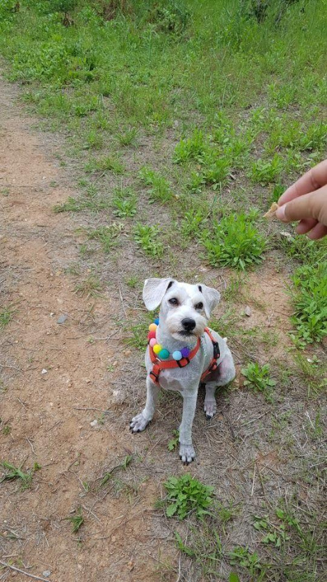 비누칠이 돼 있는 털이었지만 도깨비풀과 엉킨 털은 빗질에 속수무책 뜯기다시피 했고 털이 뜯길 때마다 마루는 비명을 질렀다. 마루에게 미안해!를 연발하며 최대한 털이 안 뽑히게 떼어낸 도깨비풀을 긴 털에서 한참 빗어내다보니 털이 짧았으면 이렇게 고생할 게 아닌데, 하는 생각이 들어 당장 미용을 결심했다. 첫 미용은 신중하게 해야 된다는 이야기를 많이 들어서 언제 할 지 고민하다 미루고만 있었다. 이제는 더 미룰 수 없어 미용과 관련된 여러 글을 읽어보고 지역 카페를 통해 미용실을 검색하기 시작했다. 최대한 신중을 기하며 후보를 추렸다. 후기도 꼼꼼히 살펴보고 가장 많은 추천을 받은 곳이 어딘지 살펴봐서 마침내 마음이 쓰이는 한 군데를 정해 마루를 맡겼다. 마루가 약 6.2kg, 6개월이 되던 무렵이었다.