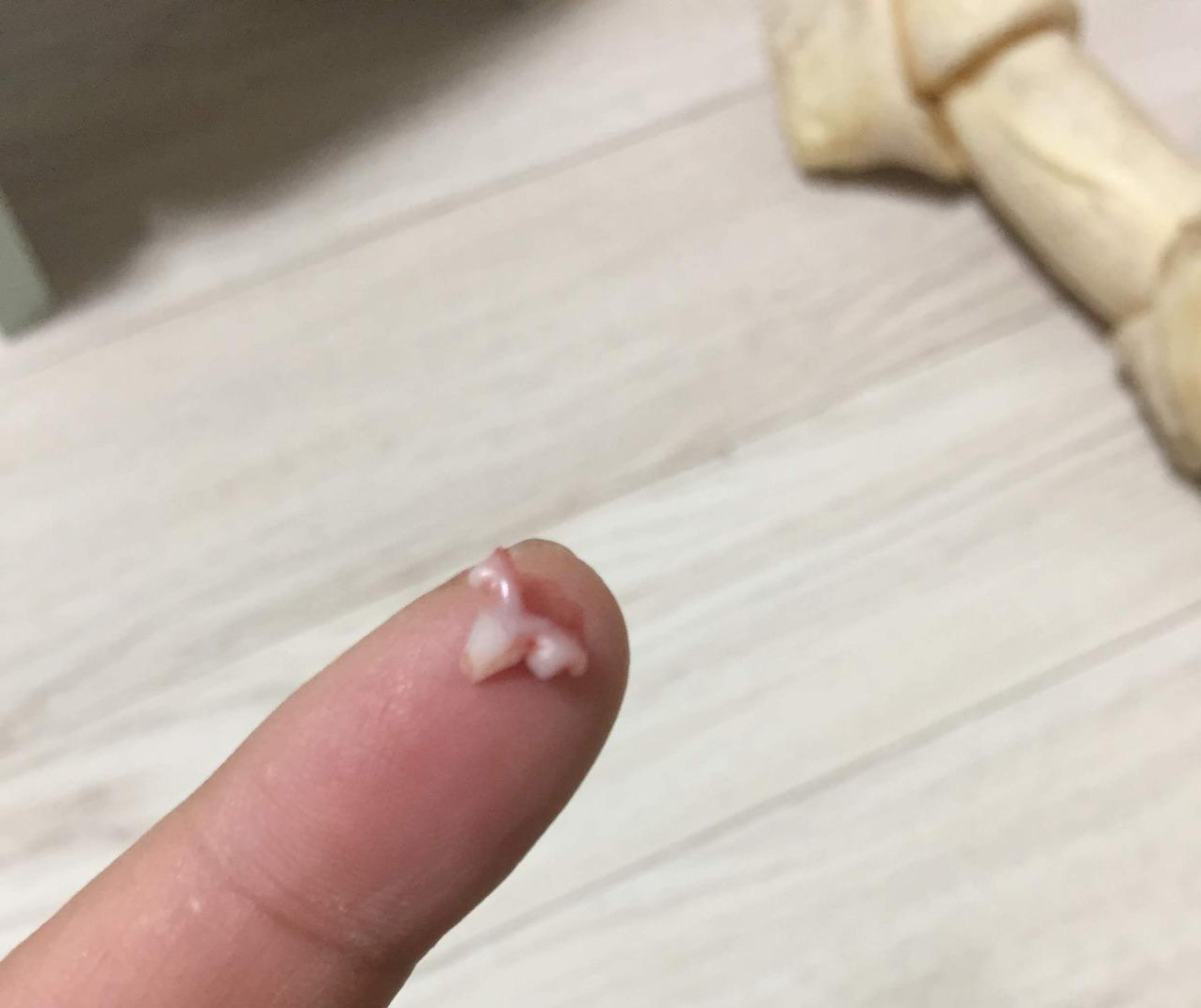 마루가 집에 오고 두 달쯤 지난 3월의 어느 날. 소파에 흰색의 무언가가 있어서 봤더니 마루 이빨이었다. 드디어 이갈이가 시작됐구나! 뭔가 뭉클했다. 착실히 성장하고 있다는 걸 소파 위의 작은 이빨이 알려주는 것 같아서였다. 이럴 때가 아니지. 이갈이가 시작됐다면 이빨이 잘 빠지도록 도와줘야 할텐데. 강아지의 이빨이 어떻게 빠지는지 감조차 안 잡혔으므로 역시 검색의 힘을 빌었다. 이빨이 빠지는 시기는 제각각이지만 잘 빠지도록 하려면 터그놀이를 해주는 게 좋다는 이야기가 주였다. 그래서 열심히 손수건과 장난감을 번갈아 흔들어댔다.