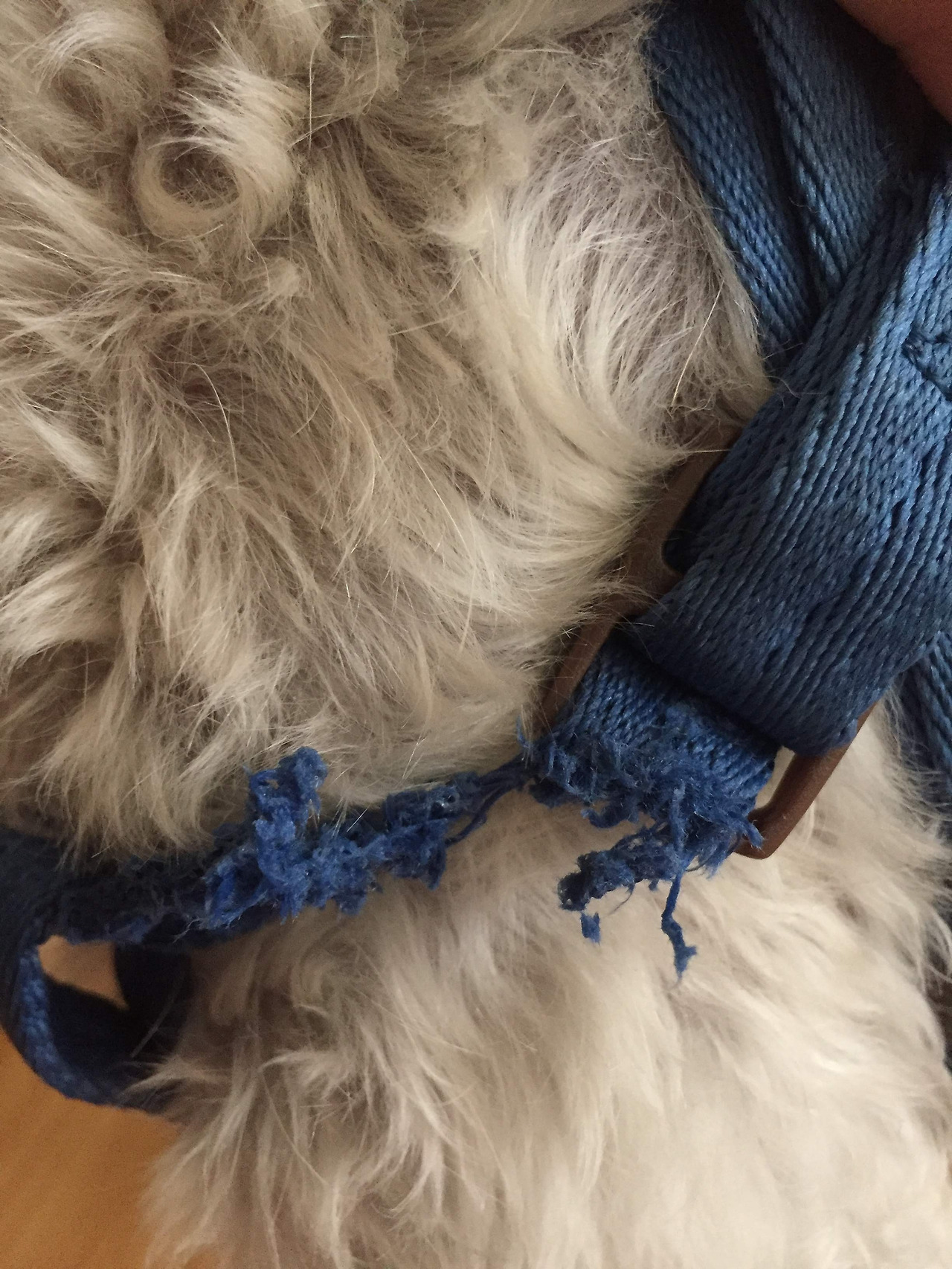 영구치가 나고 얼마 후 부작용도 나타났는데, 산책하다 마음대로 안 되면 줄을 씹어서 끊어 버리는 것이었다. 이빨이 빠지기 전에도 종종 줄을 무는 시늉은 했지만 끊지는 못했는데, 이갈이가 끝나자 본격적으로 줄을 씹어 끊어 놓는 지경에 이른 것이다. 처음 줄이 끊어진 건 마루와 함께 나선 첫 여행지에서였다. 숯불에 고기를 구으며 잠시 마루를 묶어 놓았는데, 옆 펜션의 강아지를 보러 가겠다고 줄을 씹고 마당으로 달려나갔다. 고기를 굽다 마루가 달려나가는 것을 보고 너무 놀라 한동안 움직일 수 없을 정도였다. 같이간 친구에게 집게를 맡기고 마루를 잡아 왔는데, 짧지만 자유를 누린 마루의 표정이 그렇게 해맑을 수 없었다. 잠깐의 해방감을 맛 본 때문인지 이후에는 줄 뿐 아니라 가슴줄도 끊었다. 줄을 못 씹게 고무까지 섞인 튼튼한 줄로 바꾸자 씹어서 끊기 쉬운 가슴줄을 끊고 뛰어가려는 마루를 가까스로 잡기도 했다. 그래, 영구치가 줄을 끊을 만큼 튼튼해서 참, 다행이지, 하는 마음에 씁쓸히 새 가슴줄과 리드줄을 구매해야 했던 나날들.