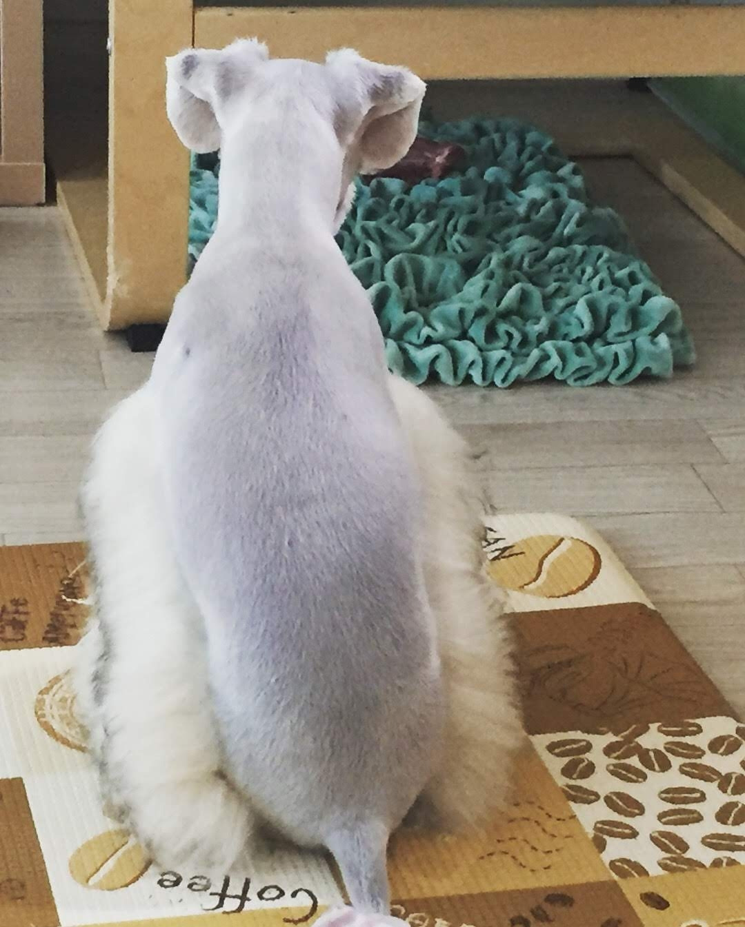 이 때부터 마루는 박스를 뜯기 시작했다. 어금니로 살짝 씹어 뭉개고 앞니로 야무지게 뜯어냈다. 3개월이 될 때까지는 박스가 무서워서 후다닥 도망다니기 바빴는데 거기에 간식을 넣어 찾아 먹도록 했더니 고양이마냥 상자 속에 웅크리고 있기도 했다.