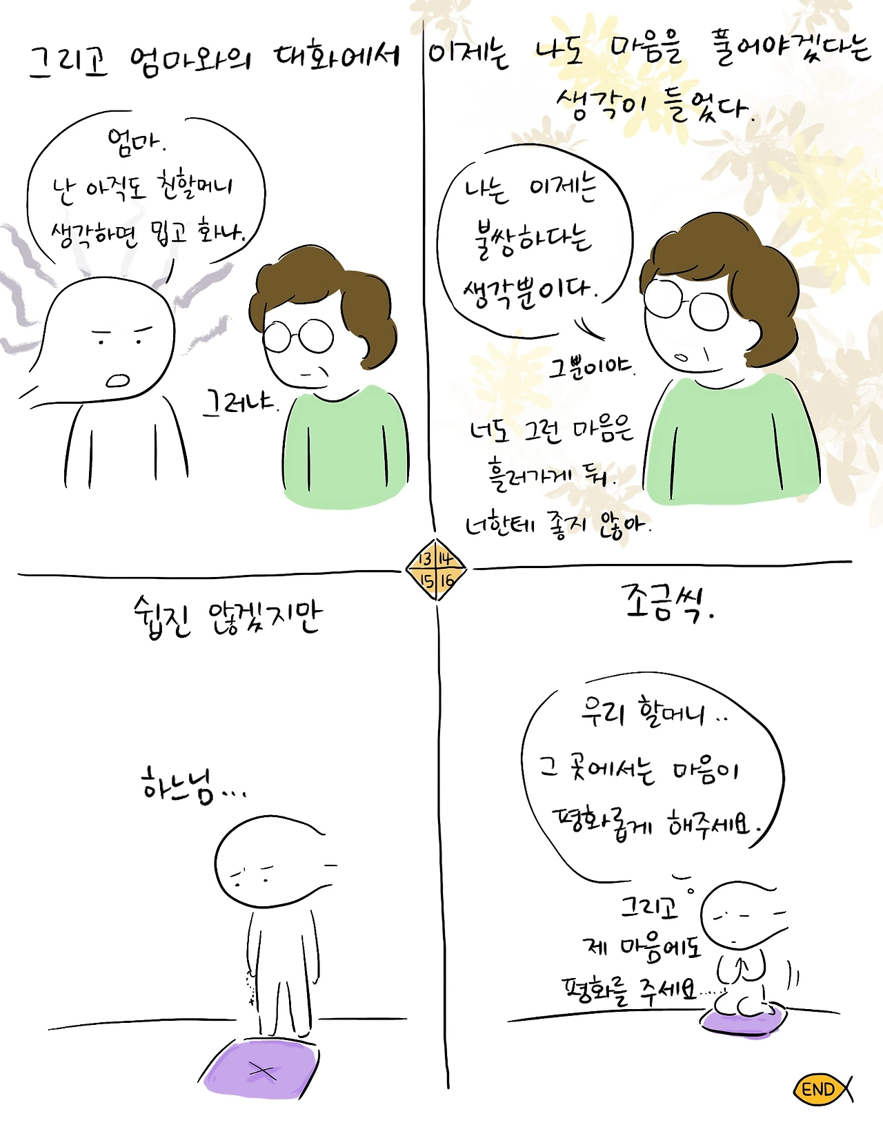 피가 섞인 할머니를 싫어했다는 걸 밝히는 것도 저에게는 썩 기분 좋은 일이 아니었고 또 아직도 할머니를 생각하면 불편한 마음이 있거든요.