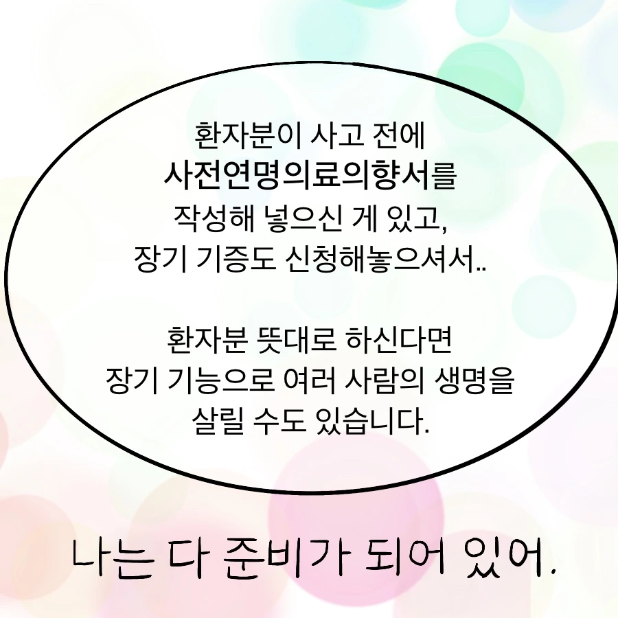 그래서 임종 과정 기간만 연장하는 연명의료를 중단할 수도 있다는 것을 알게 되었어요.