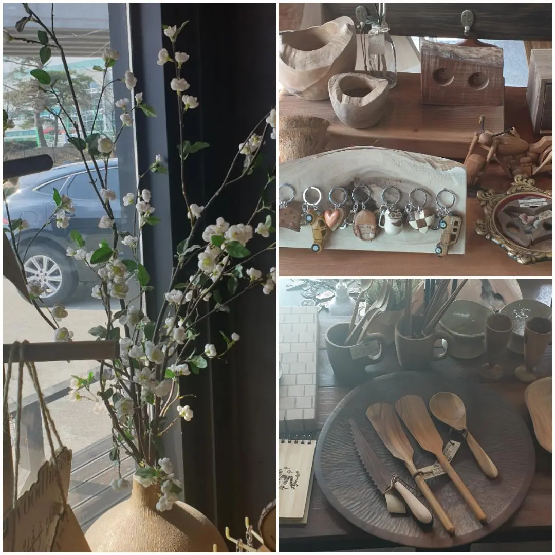 * 이 카페에선 목공예 장인이 가구 소품들을 나무로 주문제작 해준다.