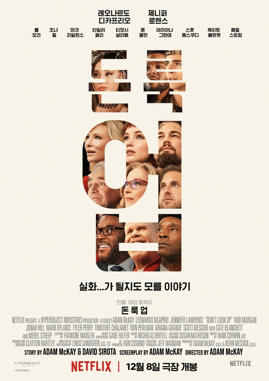 넷플릭스에 크리스마스 업데이트로 올라온 영화 '돈룩업 (2021)' 은 행성 충돌로 인한 지구멸망을 다루는 내용이다. 브루스 주연의 아마겟돈과 같은 내용 이지만 액션이 아닌 정신줄 놓고 살아가는 현 시대 인류의 바보같은 집단의식을 보여주는 블랙 코메디다. 헐리우드의 굉장한 원톱 배우들이 자발적으로 참여 하겠다고 대거 뛰어들어 감독마저 어리둥절 하게 만든 초호화 드림 캐스팅이다.