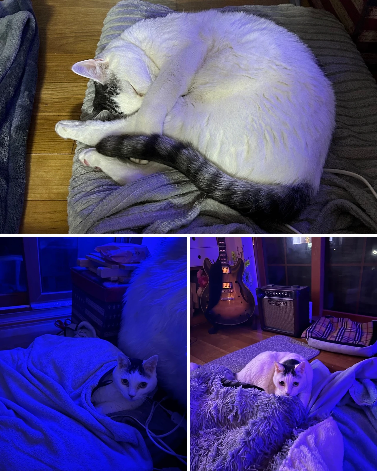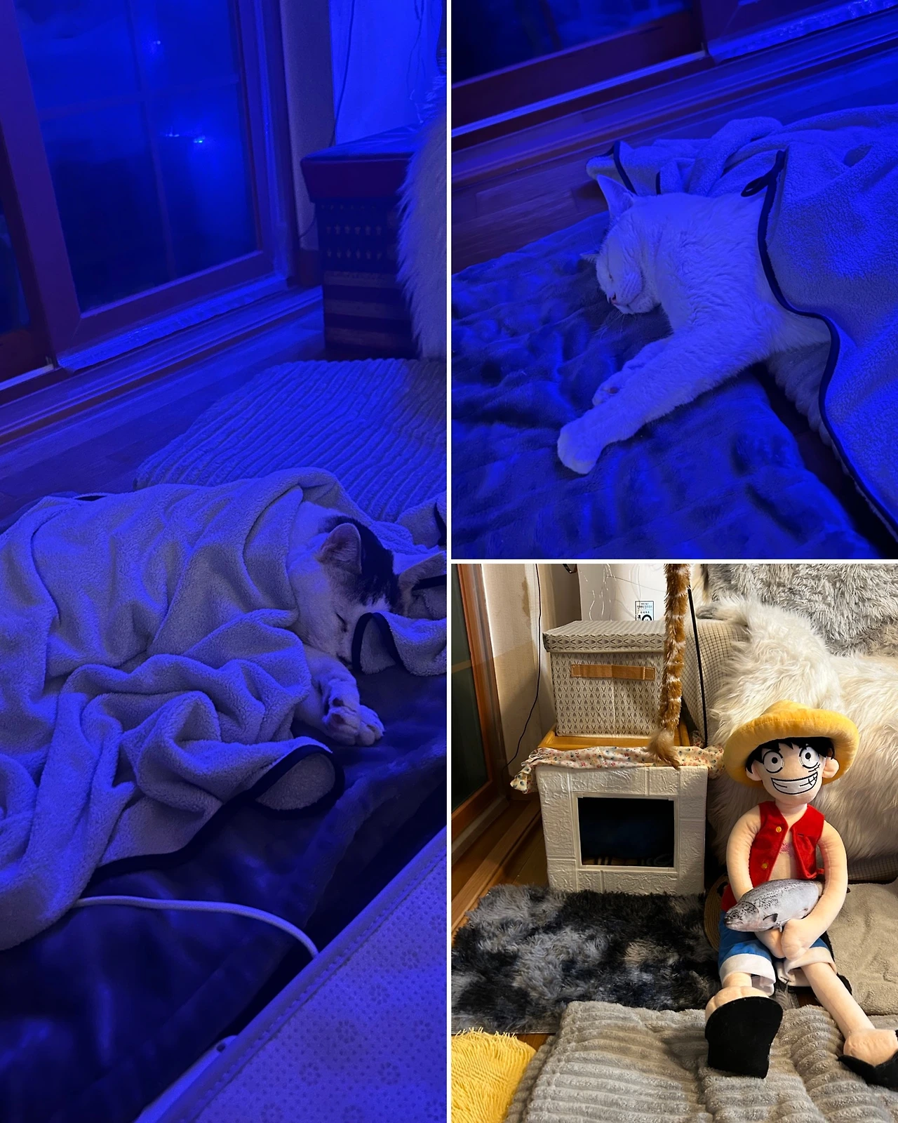안락할때 고양이는 잠을 많이 잔다. 숨을수 있고 터치받지 않는 안전공간을 마련해 줘야한다.