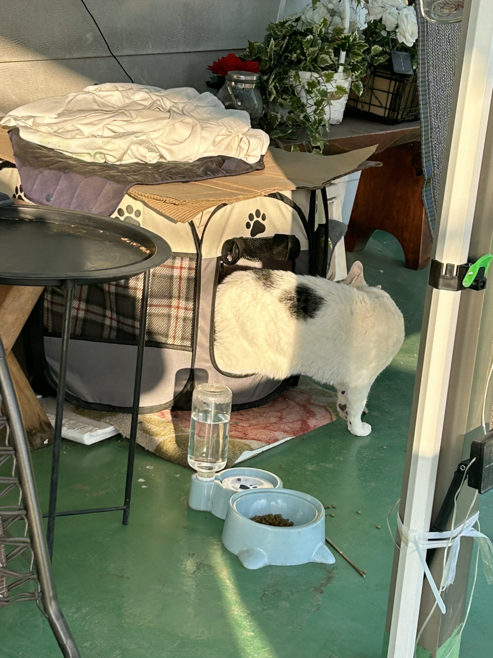 집안을 좋아할지 마당 휴게소를 더 좋아할지는 녀석의 선택이다. (물론 녀석이 실내보다 마당거주를 고집하면 다른 고양이들 체취는 없애줘야 한다.) 텐트에는 항상 관심을 보이는데 다른 고양이 냄새가 영 맘에 들지않는듯 하다. 내것이 아님을 아쉬워 하는것 같기도 하다. 녀석이 마당을 더 좋아해도 마당에서 키우는건 전 주인도 동의해야 인간 관계에서도 오해가 생기지 않는다. 8년키운 모정이 안보인다 해서 어디 그리 쉽게 사라지겠는가.