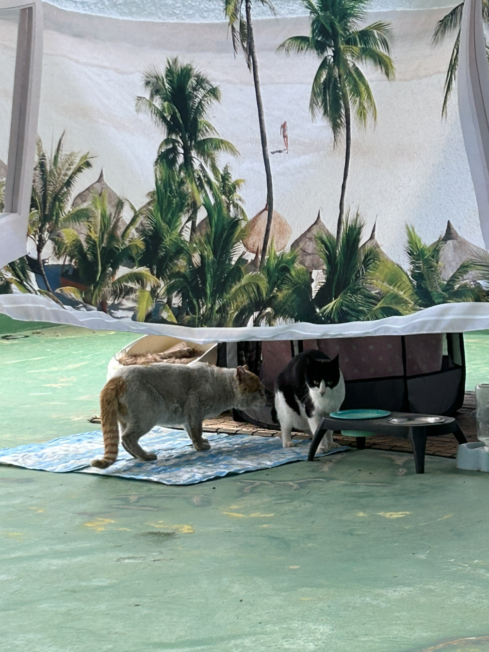 여름날, 안전한 놀이동산 꾸며 주려면 새로 텐트와 울타리를 쳐주어야 겠다. 다른 냥이들 냄새가 나는건 녀석이 자기것이 아니라고 사용하지 않는다. 나와 함께 쓸수있는 큰 텐트집 새로 마련해보자 꾸나.