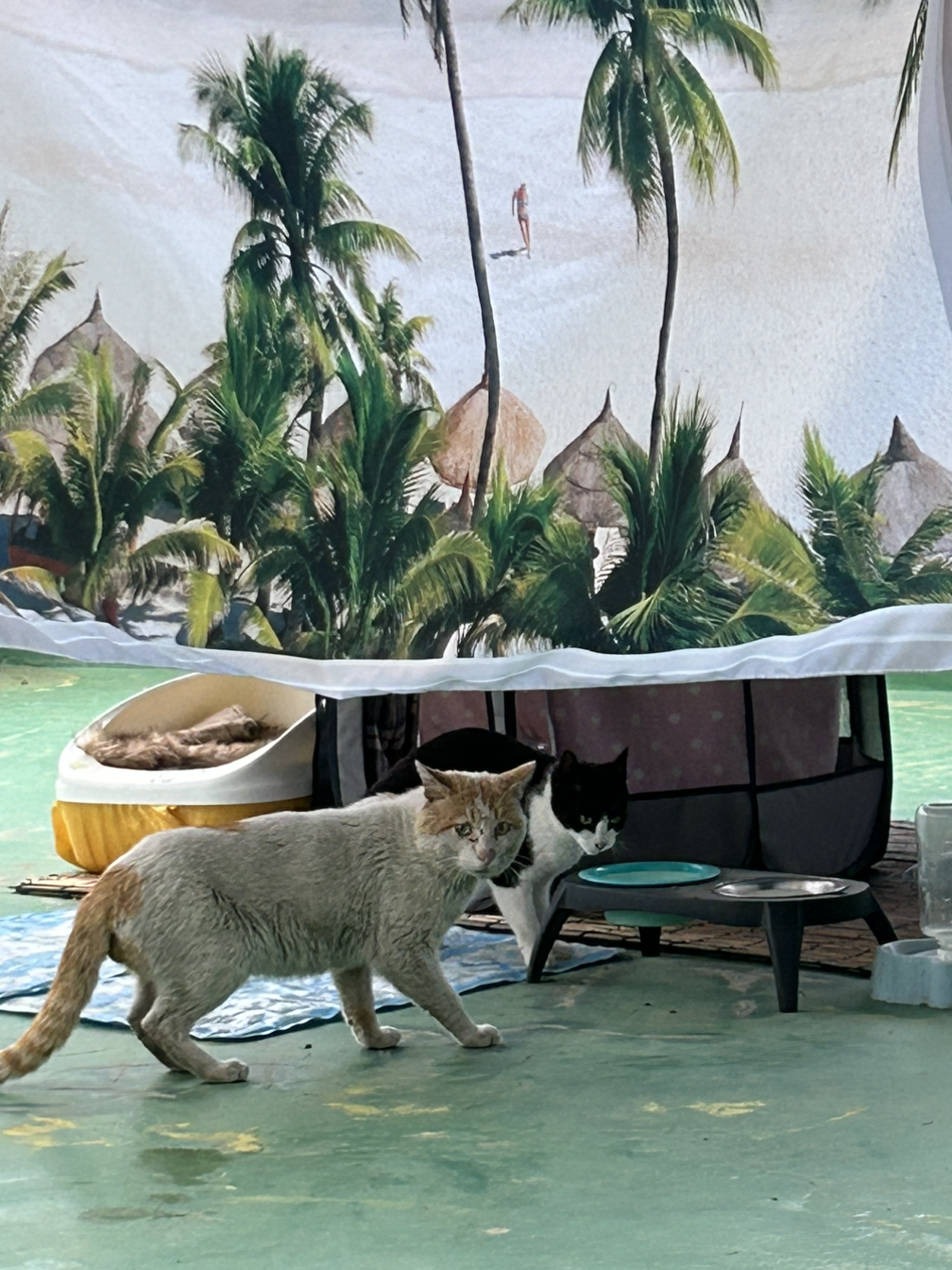 연인이 사료 먹을동안 자신은 주위를 감시하고 지켜보기만 하는것이 부모 냥이들에서 보았던 행동이다. 24시간 옆에 딱 붙어서 신입 길양이의 보호자로 자신이 아는 길거리의 생존 노하우를 하나하나 레슨중이다. 먹이를 먹인후 다음 코스로 이동한다. 사료를 먹은후 호위하는걸 보면 애지중지 순애보도 이런 순애보가 없다. 내쳐진 아씨 마님 사랑해서 모시고 보호하는 돌쇠의 모습 퐁네프 다리위의 연인들 장면들 그대로다.