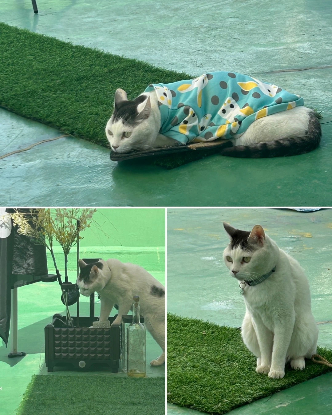 매일 찾아오는 길양이들에게 까이고 왕따 당하면서도 티격태격 하는 놀이에 빠져있던 녀석이 그런 사회적 내막을 알리가 없다. 애들이 왜 안오냐옹? 안절부절 하루종일 출입계단의 입구만을 바라본다. 가림막은 아직 (중국서) 안 왔다. 이번주에 오긴 할텐데.. (갈대 가림막은 밑으로 빠져나가고 왼만한 담장은 뛰어 넘는다.)