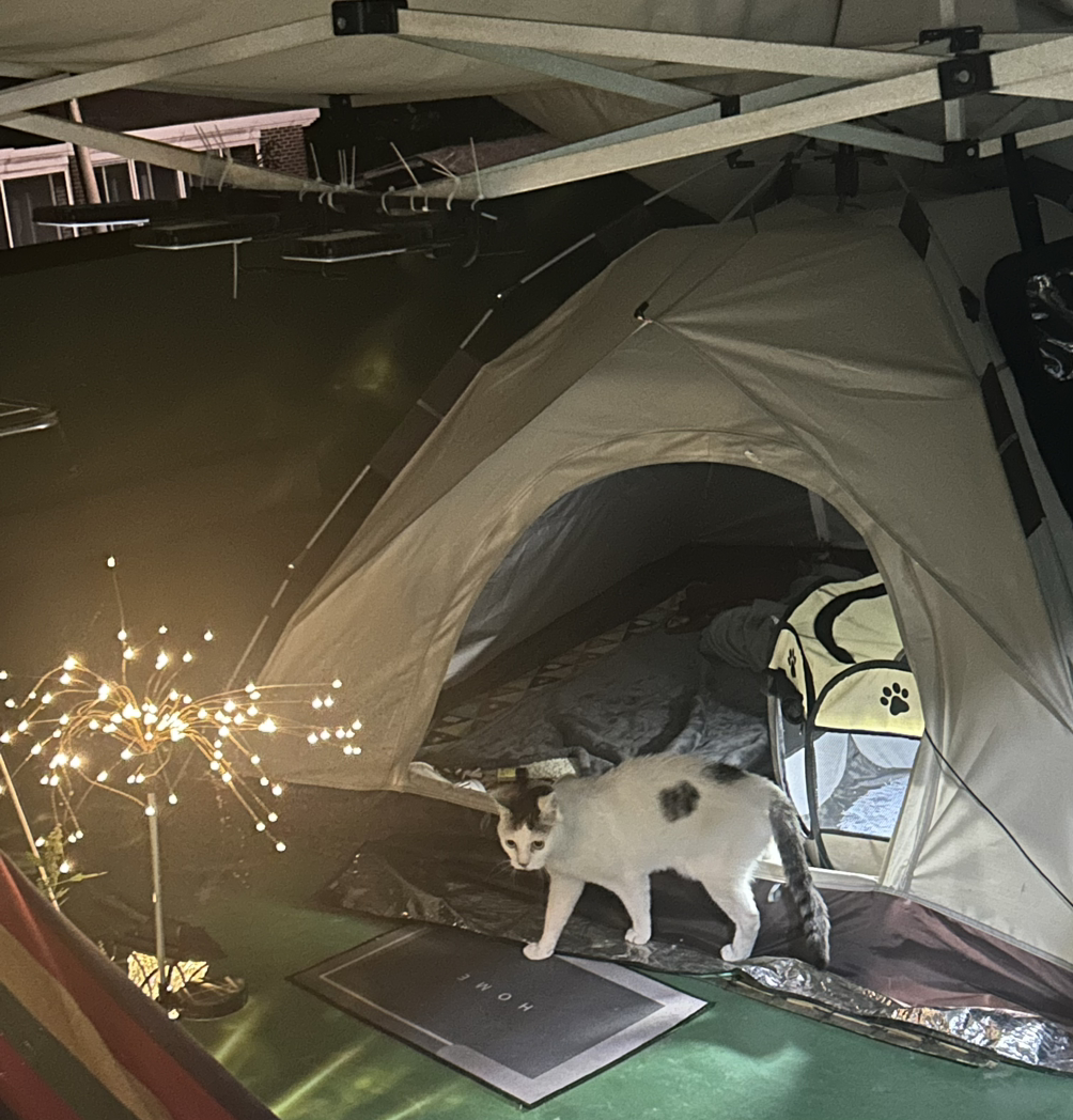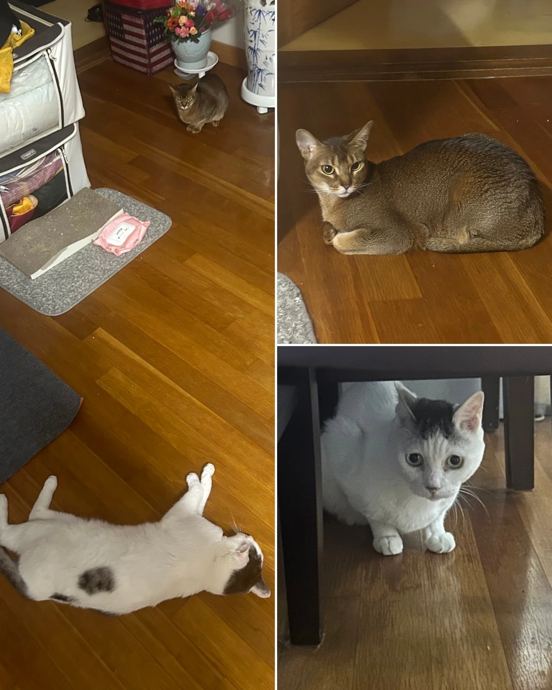 집안에선 둘의 성공적인 탐색과 만남이 잘 이뤄졌고 이제 녀석이 마당으로 냥순이를 유혹해 텐트안 합사둥지 까지 꼬시는지를 볼 생각이다. 냥순이도 녀석이 다가가도 더 이상은 하악질을 안 한다. 위험한듯 보여 분리하면 냥순이가 거실로 따라 나온다. 꼬심 성공이다. 녀석은 소원 풀었다. 녀석은 지금 하늘을 나는 기분일 것이다.