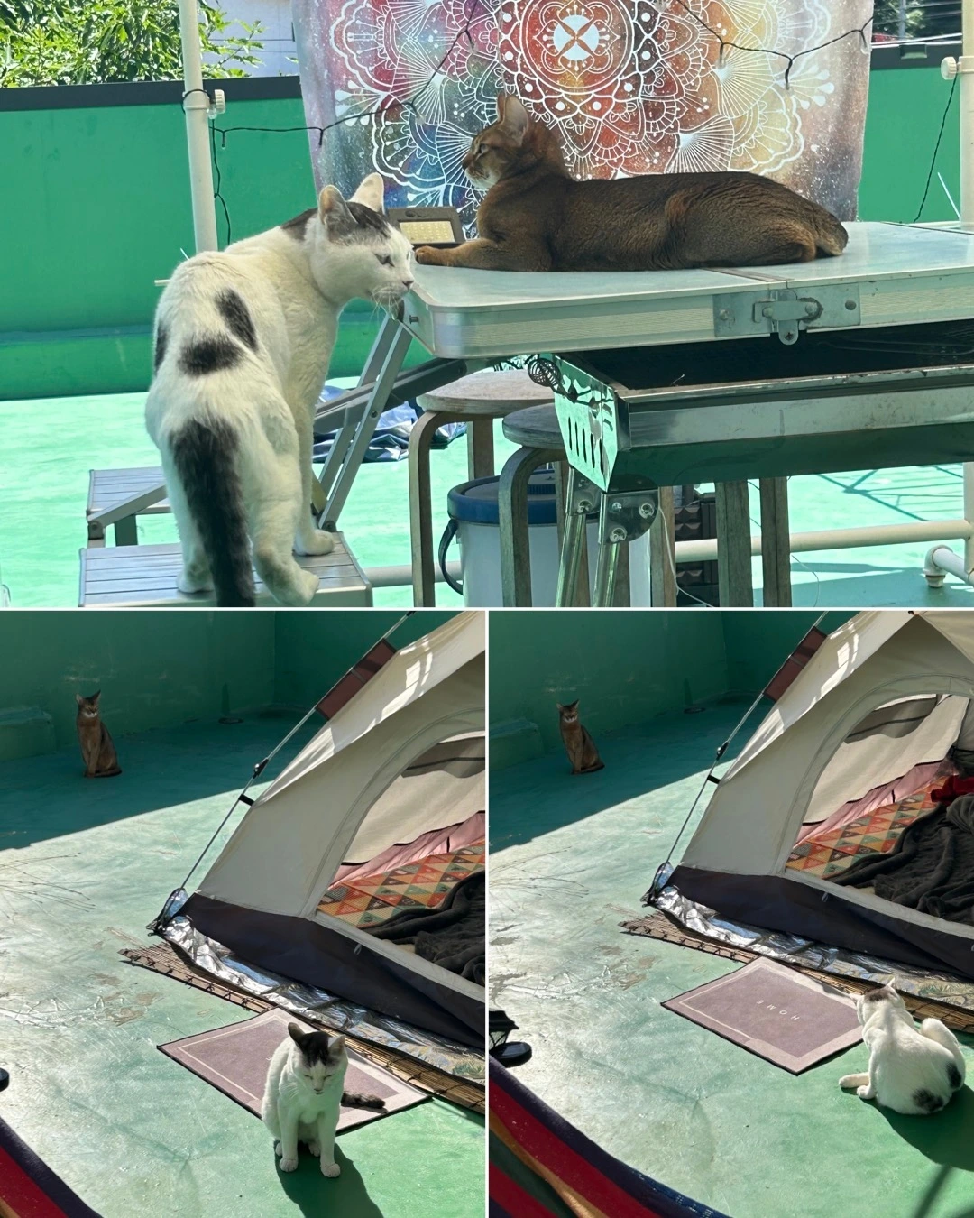 한 녀석은 집사와 친해지기 위해 애교가 늘어가고 한 녀석은 신입을 꼬시기 위해 개그가 늘어가고 녀석 둘다 올 여름 생애 처음 경험하는 신세계로 인해 흥분 상태다. 나는 얼떨결에 지인의 고양이를 맡았다가 갑자기 벌어진 일들이라 아직 발톱도 못깍고 약도 못 먹이는 초초보 집사다.