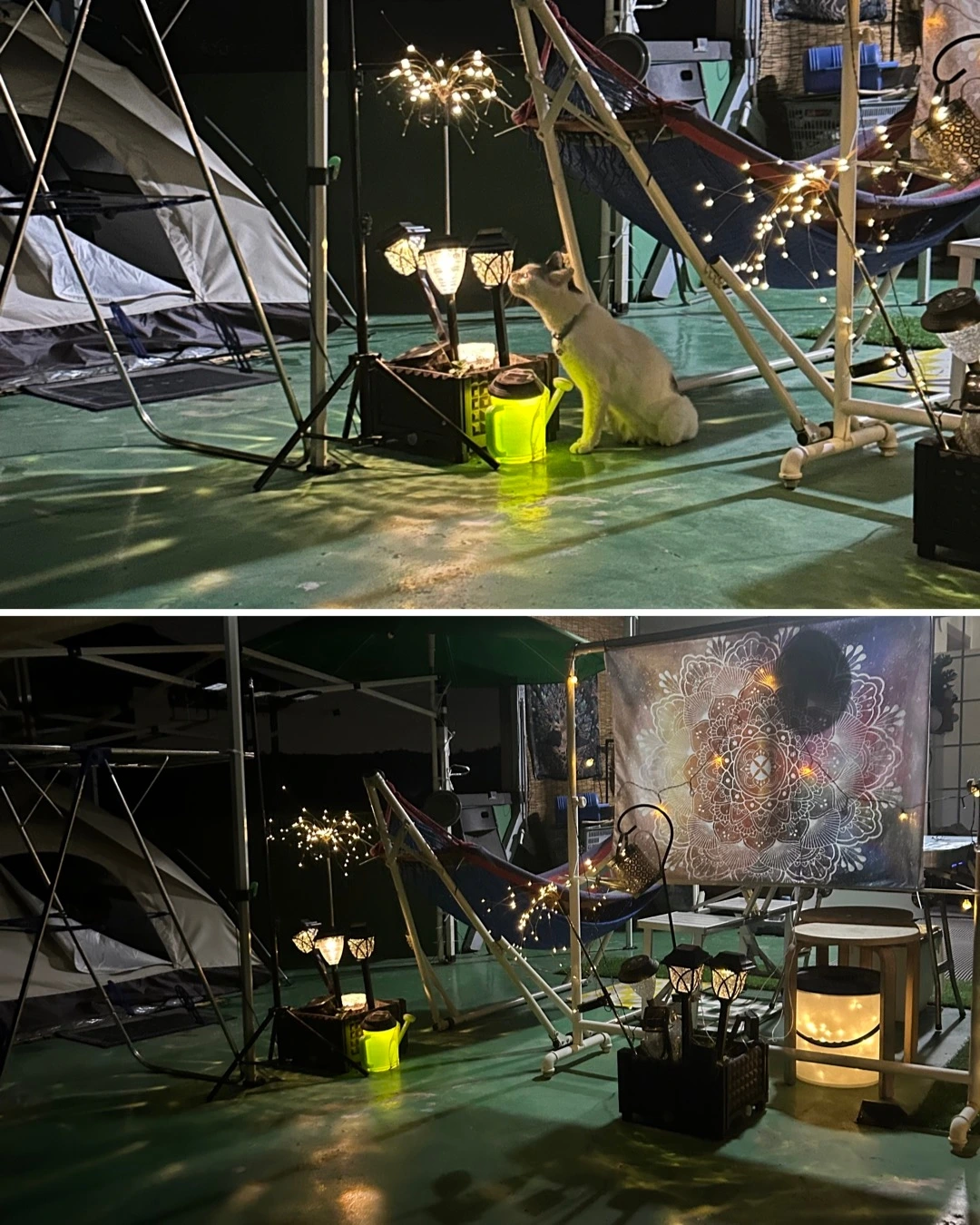 한 녀석은 밤새 침실 문앞에서 대기하고 한 녀석은 새벽 3시부터 일어나라고 안마를 시작하고 양동 작전에 밀려 새벽 4시면 기상해 마당을 개방하게 되는데 집안에 들이면 자정 넘어도 마당 문 열어달라고 수시로 졸라댄다. 안 자고 있는 녀석들을 자게 하려고 내가 먼저 자는데 니들은 도데체 언제 자는거니? 틈날때 한시간 정도씩 각자 토막잠은 자는거 같은데 한 녀석이 나와서 노는것 같으면 어느새 또 다른놈도 나와있다.