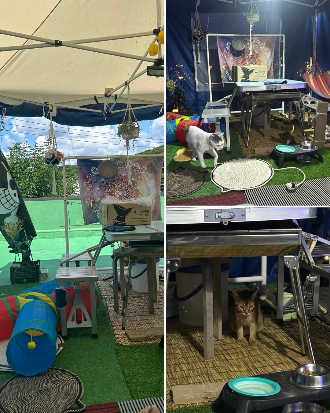 폭우 장마가 휩쓸고 간 놀이동산이 폭탄맞은 상태로 재난 상황임에도 녀석들은 아랑곳 없다. 지저분할수록 볼꺼리도 많아 신기해 하고 좋아한다. 폭우에도 폭염에도 여전히 야외를 좋아한다. 나방 잠자리등 사냥꺼리가 끝없이 널려 있어서다. 항상 물청소에 탈수되지 않게끔 신선한 물 제공, 사료와 화장실 청소를 수시로 해줘야하고 빗질과 모기등 벌레들도 잡아줘야 하고 녀석들 활동 뒤치닥 꺼리에 계속 쉴세없이 손이간다.