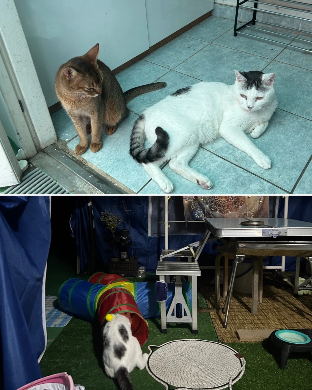 한놈은 온 집안을 헤비집고 다니며 발자국과 털을 분사하고 한놈은 잠시만 눈돌리면 호기심에 난간을 올라타고 곡예를 한다. 가출 이라도 하게되면 그 뒤의 행로야 불보듯 뻔하다.
