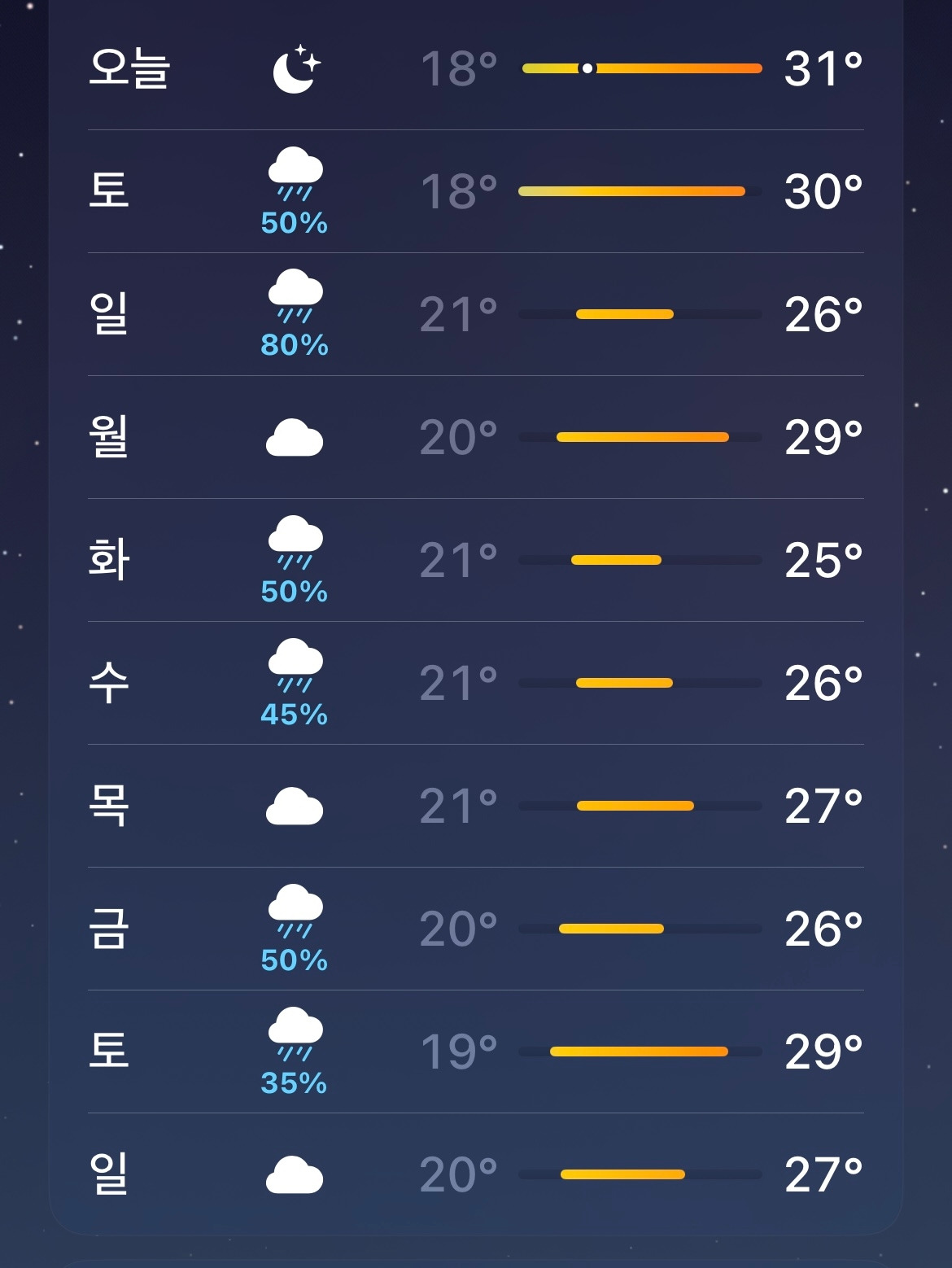 전국에 장마 주의보다. 전국이 영향권 아래 있으므로 계속 일기예보를 주시한다. 특히나 올해는 기후가 작년과도 다르고 역대 전무했던 이상기후가 이어지고 있으므로 예측이 맞지 않는 경우도 많아진다. 주말에 장마가 시작된다니 준비를 한다.