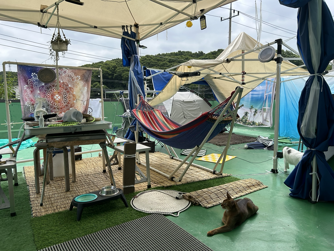 비가오자 두 녀석이 드디어 한자리에 모인다. 첼양은 소나기 오는것을 처음 보는듯 하다. 마냥 신기해서 빗속을 뛰어 나가 천막을 밖에서 한바퀴 둘러보고 돌아온다. (고양이는 보통 물을 싫어해서 비맞는걸 끔찍히 싫어하는데 절대적인것은 아닌것 같다.) 밤새 천막안을 뛰어 다니고 비 바람에 휘청대는 천막과 물폭탄 소리에 흥분하고 신나한다. 처음 겪어보는 자연과의 캠핑놀이에서 비바람 속에서 자신이 안전하다는 것이 마냥 신기하다. (두 녀석다 천막이나 비닐에 흥미를 보인다.)