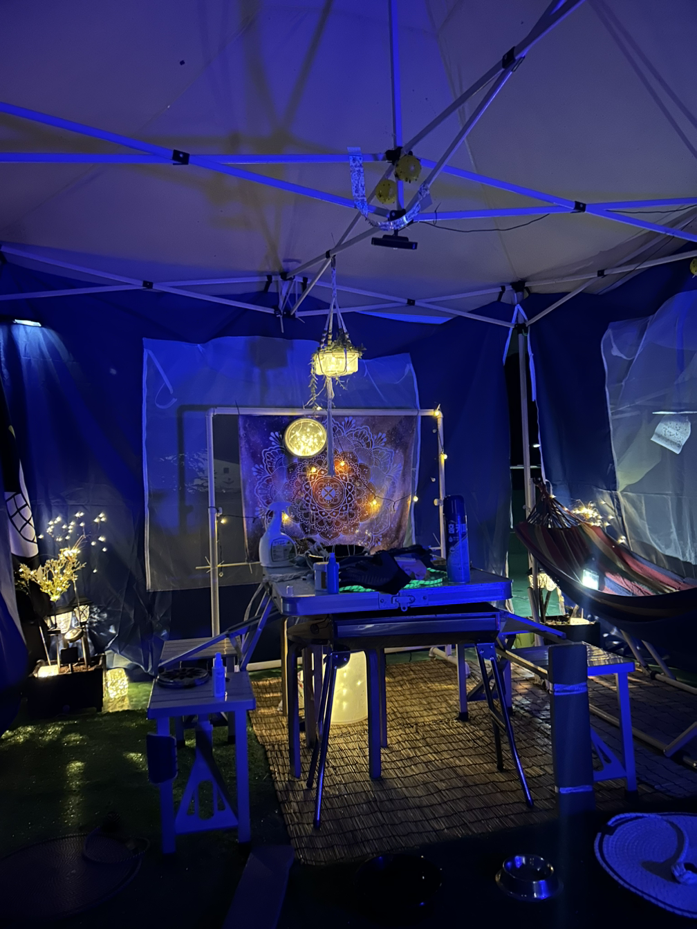 기껏 꾸며논 놀이동산을 쫄딱 적시게 할수는 없으므로 그동안 접어놓고 한번도 쓰지 않았던 천막들을 꺼내서 둘러쳐 본다. 매년 대형 파라솔도 부러뜨리는 바람인데 이번 장마에 견뎌낼지는 두고보면 알것이다. (특히나 천막 지붕이 느슨하면 빗물이 고이면서 무게로 천막이 찌그러 지고 무너진다. 물이 급속도로 고일땐 칼로 지붕을 찢는 방법밖에 없다.)