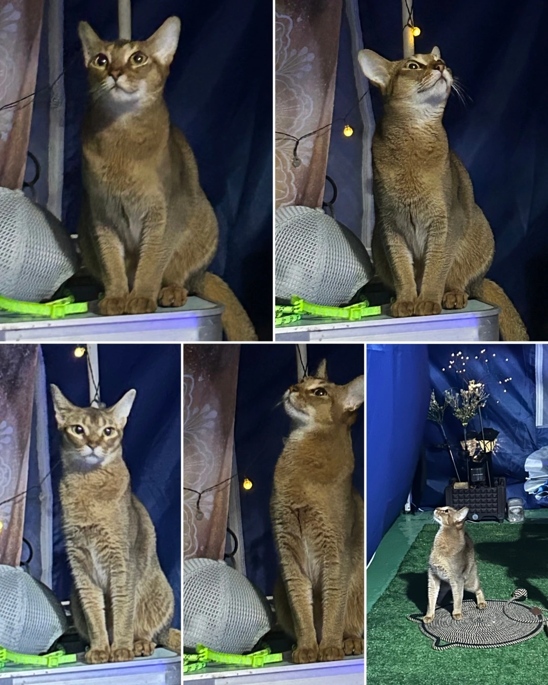첼양은 탐군과 성향이 반대다. 녀석은 낮선 엄마에게도 다가가 몸을 부비는 애교를 부리고 구석에 숨지도 않는다. 암컷과 수컷 성향 차이도 있겠지만 탐군과는 완전 반대 성격이다. (아비종 특징이 개냥이로 대체적으로 그런 성향이라고 한다. 개처럼 산책도 가능하다란 말도 들었다. 대신 gr묘라 하는 이유와 반전이 있다.)