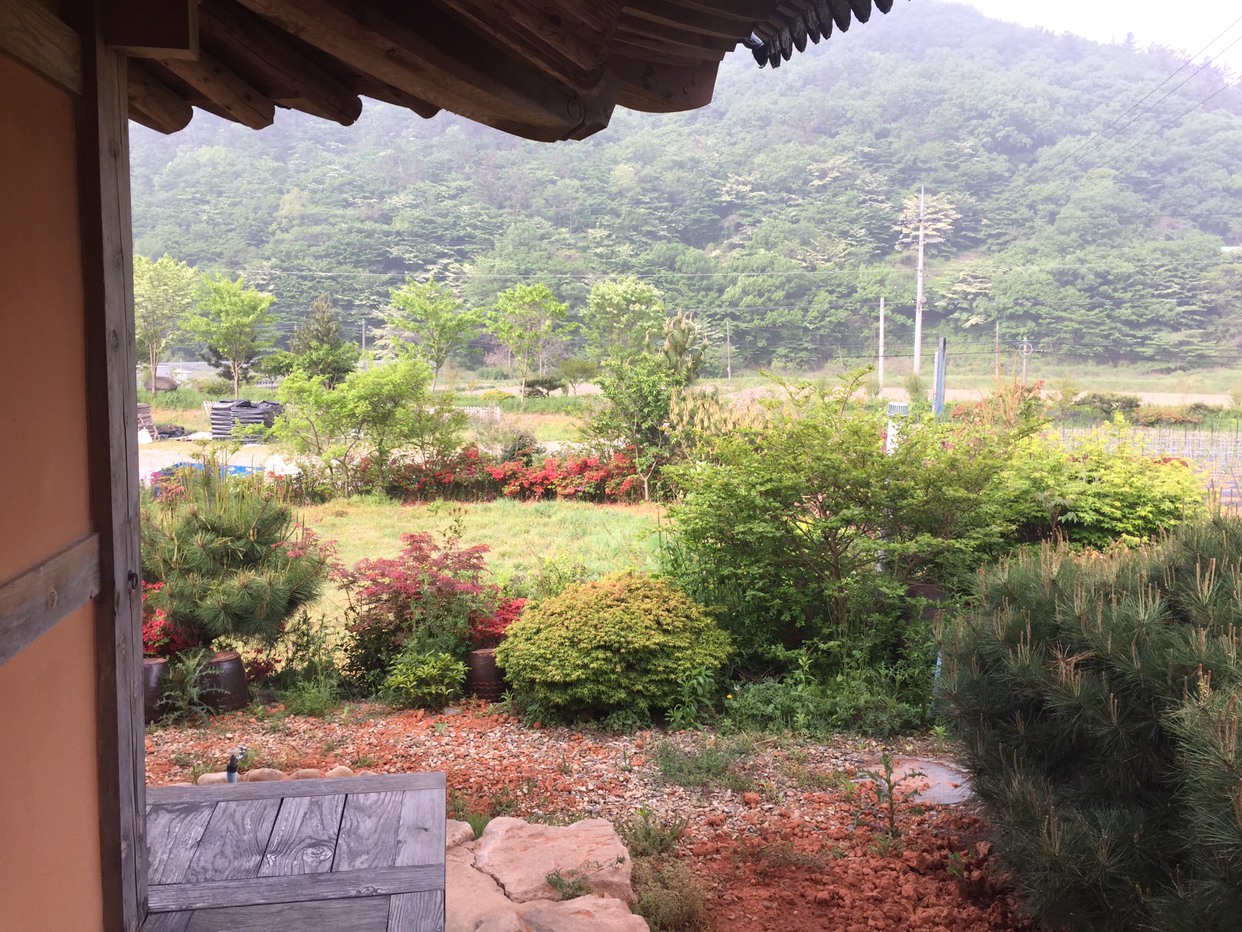 아침부터 새소리 폭격이 시작된다. 어제 세시쯤 잠들엇는데 여섯시 된걸보니 세시간 잤나보다. 새소리 들으며 두시간 정도를 뭉기적 대다 방문을 열고 나오니 공기가 그렇게 맛있을수가 없다. 공기가 '맛있다' 라는 생각은 처음 해봤는데 정말 그렇다. 맛있는거 먹었을때 몸에서 나오는 엔돌핀이 시골에선 아침에 숨만 쉬어도 나오는것 같다. 몸까지 개운하니 '완벽해' 라는 탄사가 나온다.