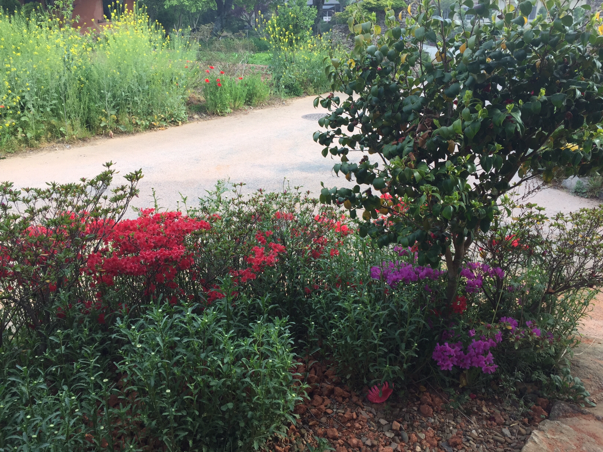 내 방앞에도 꽃들이 피었다. 아침마다 인사를 나눌 이쁜애들이 여기저기 널려있다. 어제 전국의 관광지란 곳을 몇군데 가볼까 하다가 영 안땡기던 이유가 관광지란 곳들의 사진들을 보고나니 내 주위의 자연공간이 더 훌륭하다는걸 깨달았기 때문이다. 천혜의 자연속에서 지내면서 그보다 못한 인공 자연이나 비슷한걸 보러 궂이 돈까지 주면서 다니고 싶은 맘이 싹 가신다.