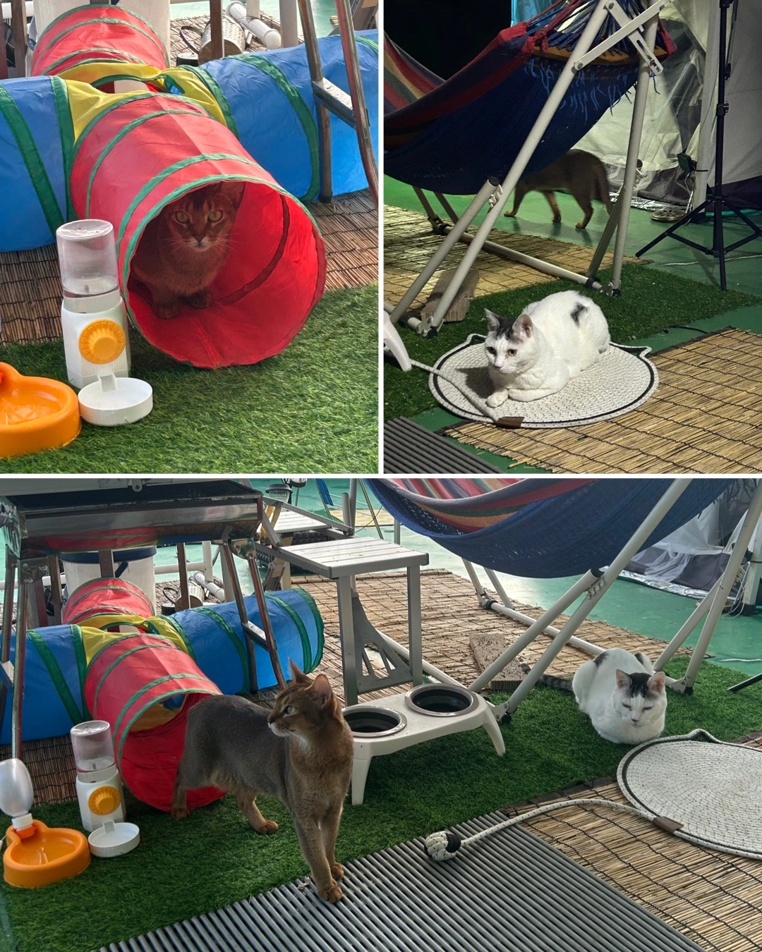고양이 들을 사람율법에 강제로 맞추면 눈치보는 비굴한 냥이가 되고 서로가 안 행복하다. 날씨가 종잡을수가 없어 실내와 마당 고양이 들이 들락거림에 현관문이 있으나 마나다. 폭염이 강세일때는 낮에 에어콘 때문에 계속 거실문을 열고 닫고 해야 하는것이 신경쓰여 밤에는 잘때도 현관 문을 아예 열어놓고 잔다. (폭염으로 인해 고양이들이 새벽과 밤에 주로 놀고 활동한다.) 계속 따라 다니면서 치울수도 없고 뛰다님을 제지할수도 없기에 깔끔떨기를 포기해 버렸다. 거실이 마당화 됨에도 그냥 냅둔다. 최후의 보루로 침실만 탐의 출입금지 구역으로 정했다. 탐군의 털날림을 감당 못해서다.