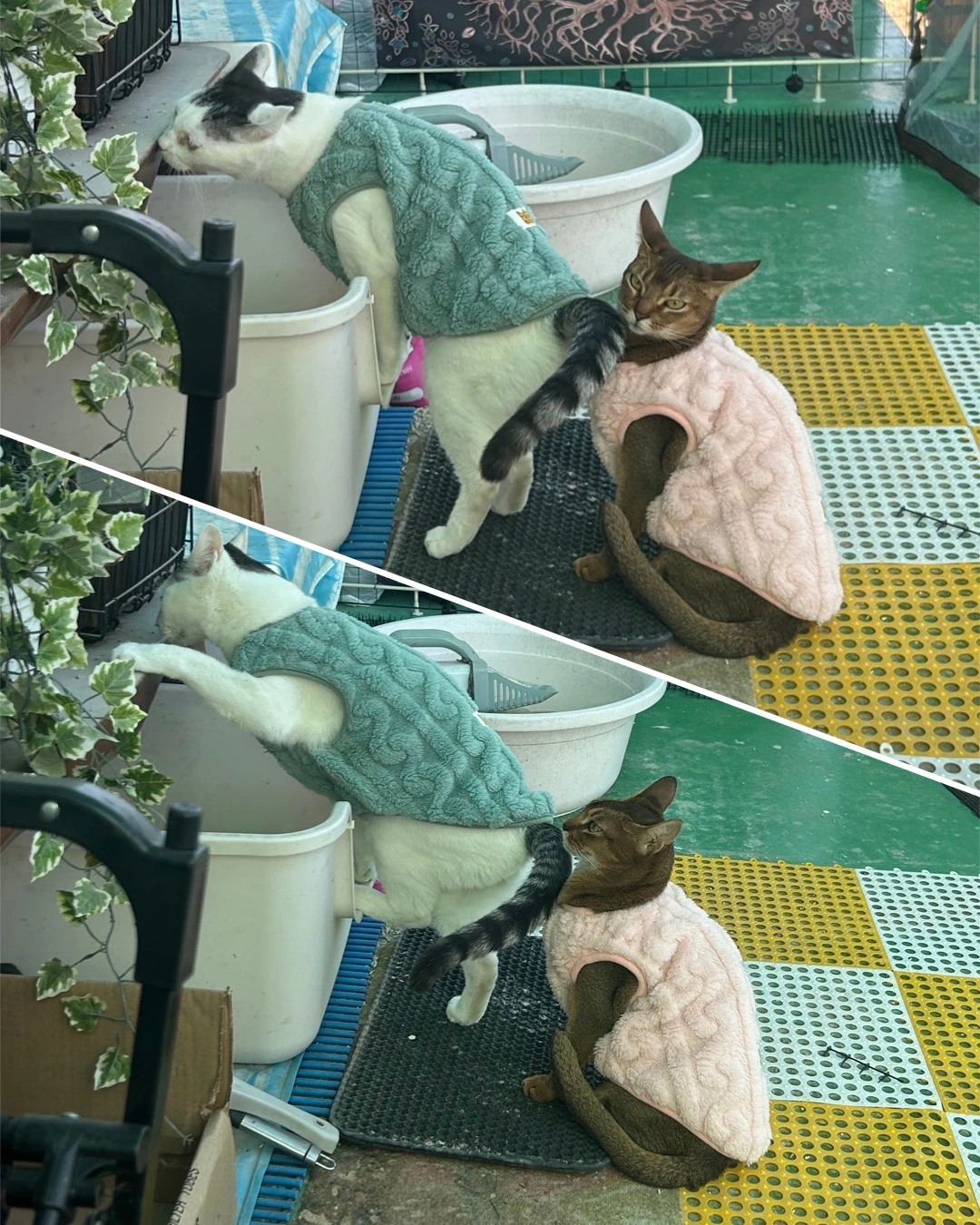 암컷 수컷 나이 상관없이 서열은 오로지 기세를 따른다. 힘이 쎈 탐군이 그나마 순둥이고 앙칼진 첼양이 덩치가 작고 암컷인게 그나마 힘 균형이 아슬하게 맞는다. 아니면 한쪽이 구박받고 기를 못피는 콩쥐팥쥐 되는거다. 탐군이 순해서 만만해 보이니 첼양이 가끔 꿀밤을 먹이는데 힘쎈 탐군이 맘먹고 인상쓰면 첼양도 그딴짓 함부로 못한다.