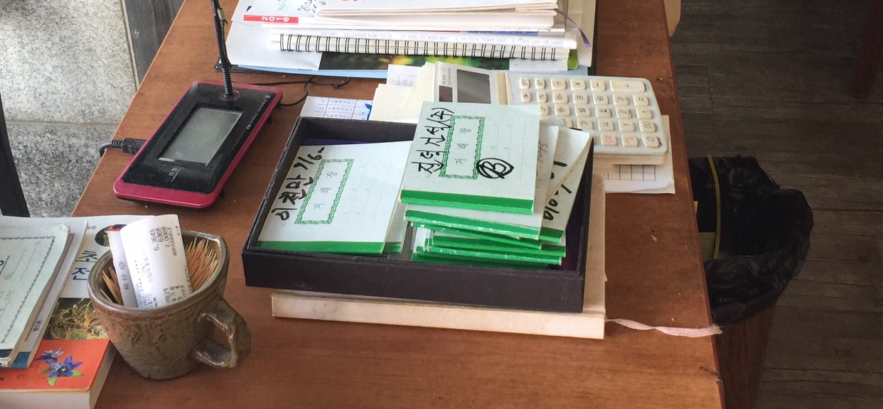 카운터에 잔뜩 올려있는 밥대놓고 먹는 인부들 회사 수첩갯수만 봐도 식사시간 외에는 그야말로 마냥 한가해보이는 이집이 얼마나 대박집인지 알수 있다. 보통 노가다들은 아침부터 저녁까지 하루 세끼를 대놓고 먹는다. 수첩 하나당 한달매출 ? 정도는 나올테니 매달 ?대 매출을 올리는 식당인셈이다.