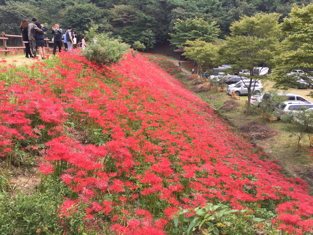 가을엔 지방마다 여기저기 꽃들의 축제기간 이다. 내일까지 꽃무릇 축제라고 마을 잔치 기간이다. 용천사라고 하는 작은절에서 하는거고 근방 불갑사에는 다음주까지 상사화축제 도 열리고 있는데 불갑사는 워낙 거대한 사찰이니까 아마도 축제 규모도 훨씬 클것이다. 군청에서는 10월달 국화축제도 열리는데 엑스포 공원에서 열리는지라 인산인해를 이룬다.