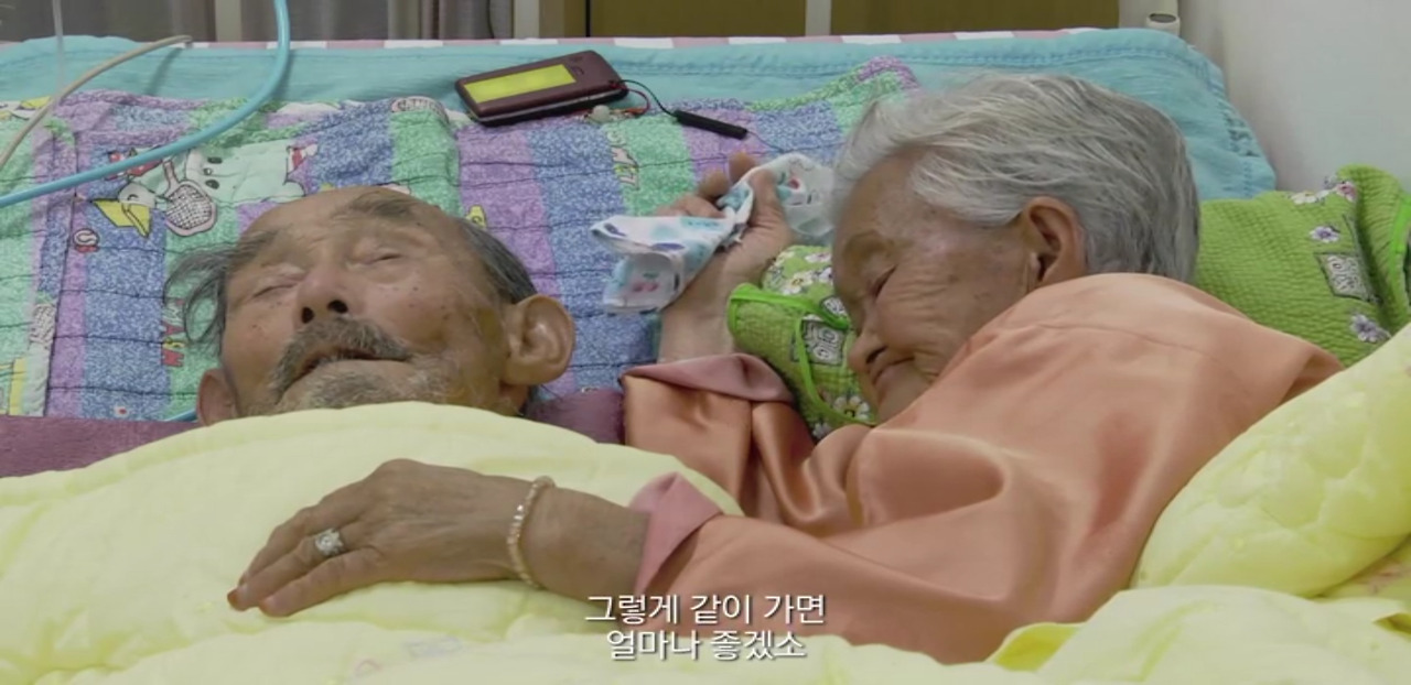 할머니 나이 89세 할아버지 나이 98세.. 할머니가 14세때 고아로 집에 하인처럼 일해주는 할아버지를 처음 만나 부부의 연을 맺고 지금껏 연인으로 살아왔다. 그 시대 부모들이 그랬듯, 12명의 자녀중 6명을 어려서 잃고 6명의 다 자란 아이들과 손자 손녀들을 구성하는 대가족 일가를 이루었다.
