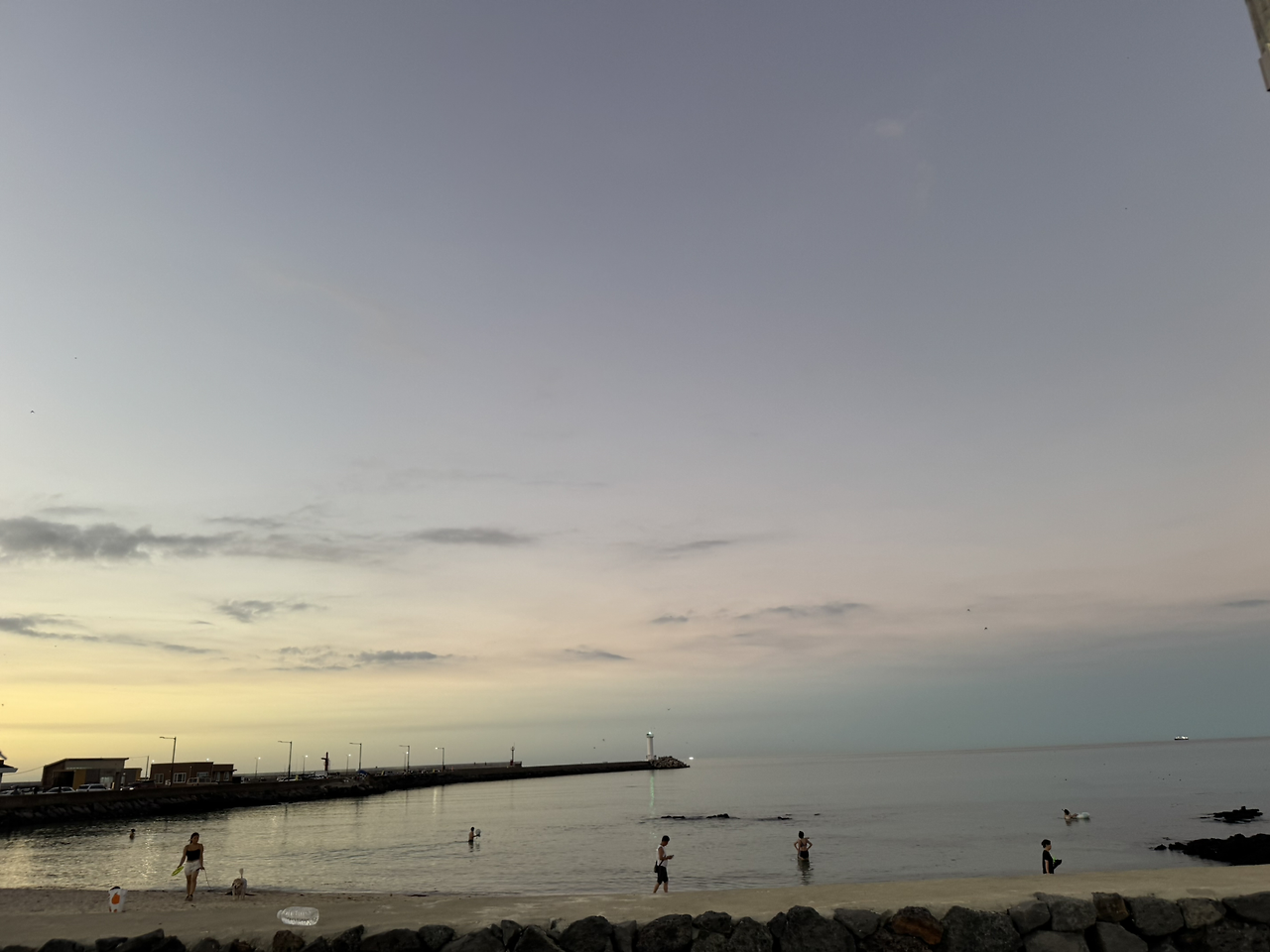 이번 여행에 온 우리 셋에게는 마음 편한 풍경과 여유가 너무 절실했다. 매 순간 그 여유를 더 만드는 방향으로 일정을 만든 걸 보면 그렇다. 이동을 많이 할 생각이 없다며 렌트를 포기하고, 흑돼지는 근처 하나로마트에서 사와서 구워 먹었다. 어떤 '어트랙션' 이랄 것은 걸어갈 수 있는 동네 독립서점과 동네 바닷가, 그 앞에서 있던 야시장 행사가 전부였다.