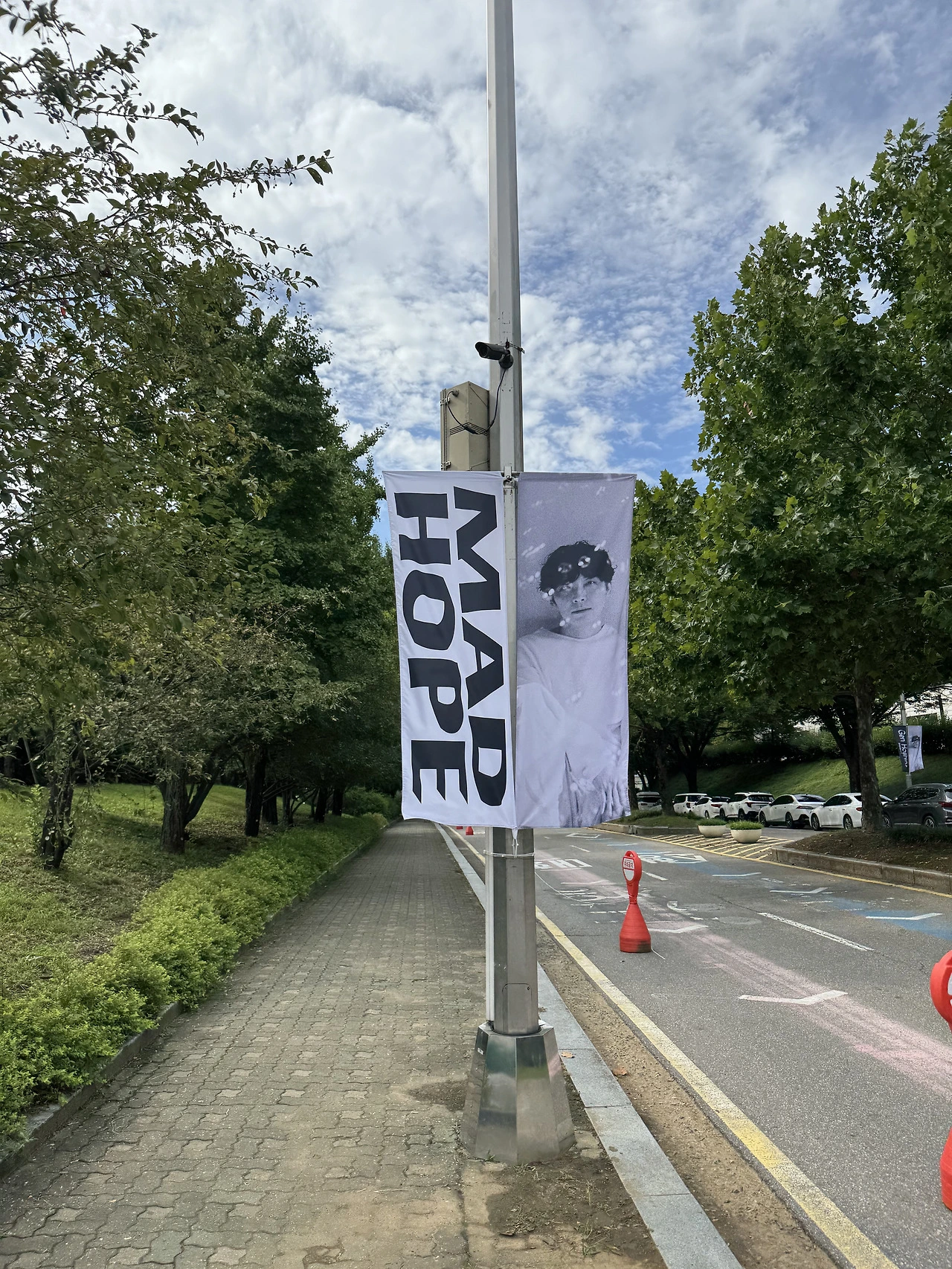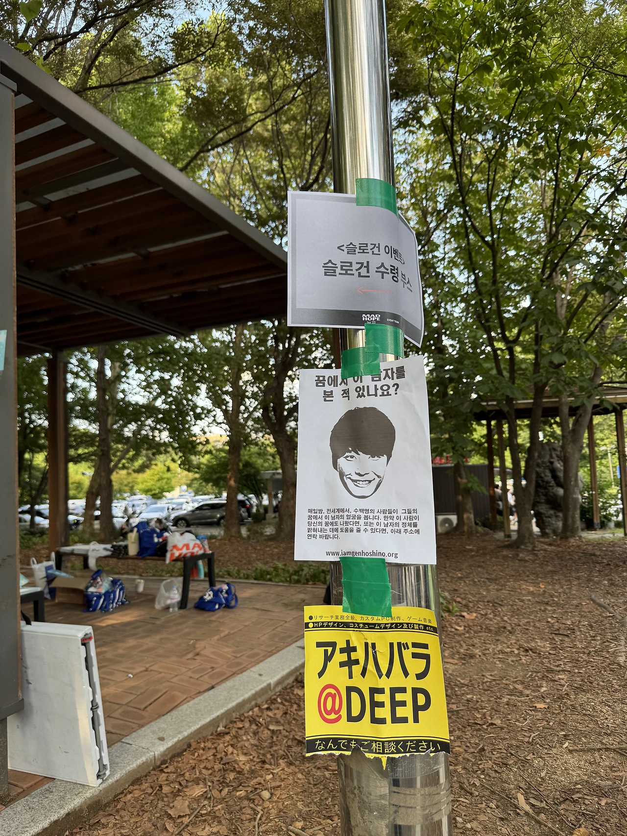 일본 현지에서 ‘온가족의 아레나'일 공연이 바다를 건너오니 일본어 멘트를 통역 없이 빠르게 이해하는 이들로 채워진 ‘덕후들의 올림픽홀'이 되어 있었다. 내한을 맞는 한국 호시노 겐 팬들의 열의는 아이돌 팬 못지 않았다. 팬들이 공연장 앞에서 슬로건을 나눠 주었고, 이벤트 카페를 만들어 굿즈를 전시하는 것은 물론, 생각보다 더운 날씨에도 불구하고 온갖 팬메이드 굿즈를 올림픽공원 곳곳에서 나누고 있었다. 금요일에 김포공항에서 하루종일 입국을 기다린 팬들이 한 목소리로 호시노 겐에게 인사하는 모습은 정말 놀랍기 그지없었다. 한편, 공연이 끝나고 올림픽공원역에 가는 길목에서 내 뒤에 있던 어느 분들은 국내에서 개최되는 거의 모든 일본 아티스트 공연을 다 거론하고 있었다. “켄시도 다녀왔고, 다음 주에는 세카오와를 갈 거고, 즛토마요는 어떻게 되었으며…” 다수 일본 아티스트의 내한공연에 출석 도장을 찍는 국내 ‘제이팝 팬' 정체성을 가진 이들의 존재와 열의를 이렇게 알 수 있었다.