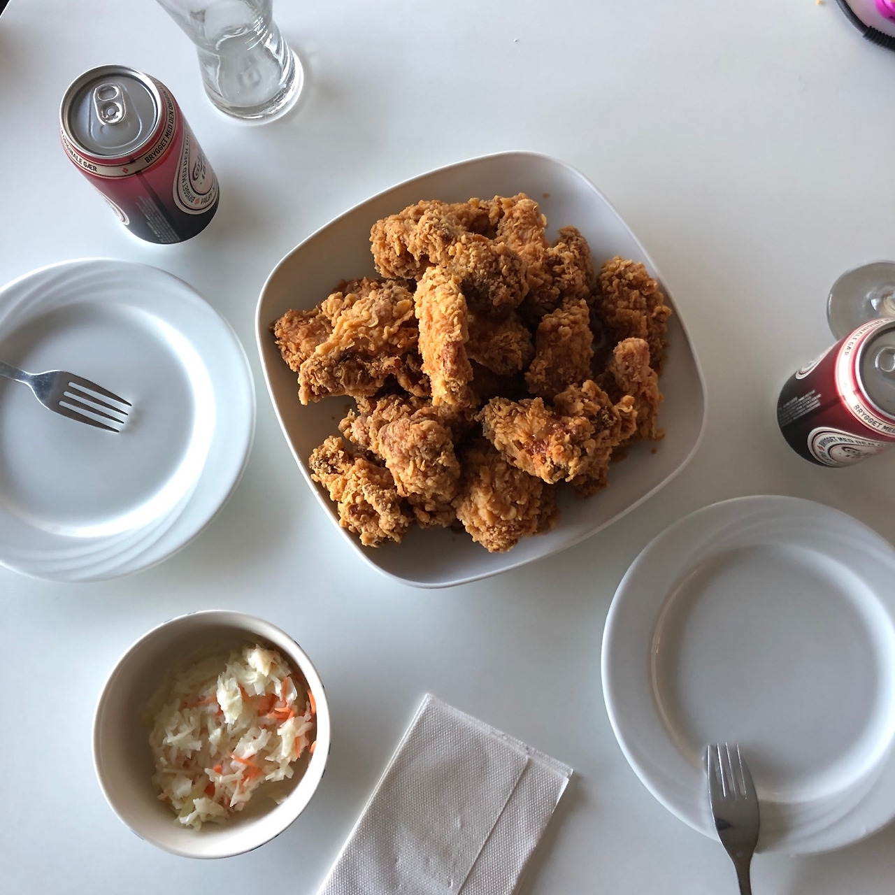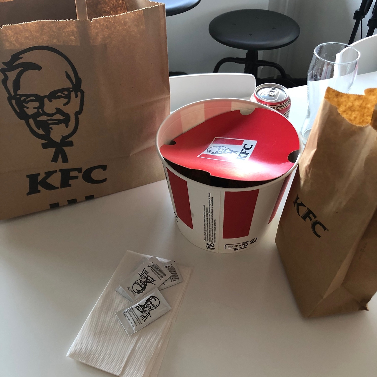 덴마크에 온 지 일주일 정도 됐을 때, 집 근처에(사타구니가 아파오기 전까지인 왕복 50분 거리 이내를 집 근처로 정의하고 있다) KFC가 있는 걸 발견하고 매장에서 치킨을 시켜 먹었었다. 그 이후로 너무 검소하게 살기도 했고 치킨이 너무 먹고 싶어 FLEX 할 때가 됐다며, 같이 사는 사람과 KFC 치킨을 주문했다. 배달이 불가능해(가능해도 배달비가 주문 금액과 별 차이 안 나기 때문에 배달비 FLEX는 앞으로도 없을 것이다) 자전거로 픽업해 왔다.