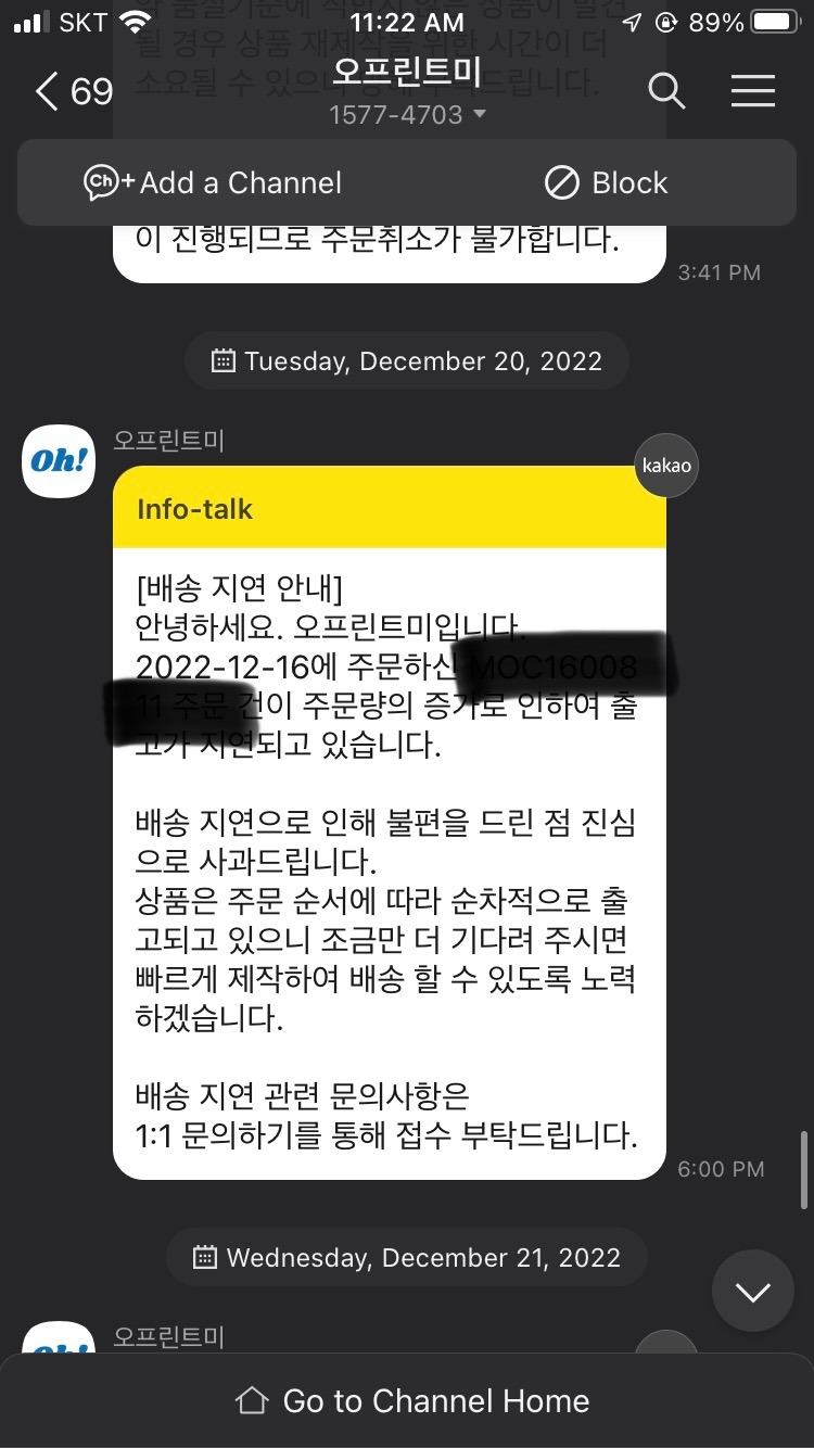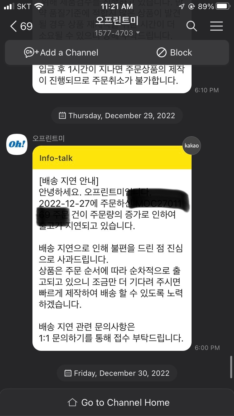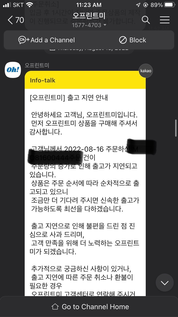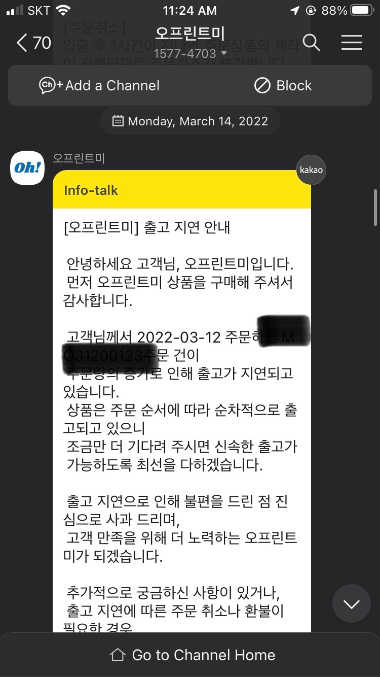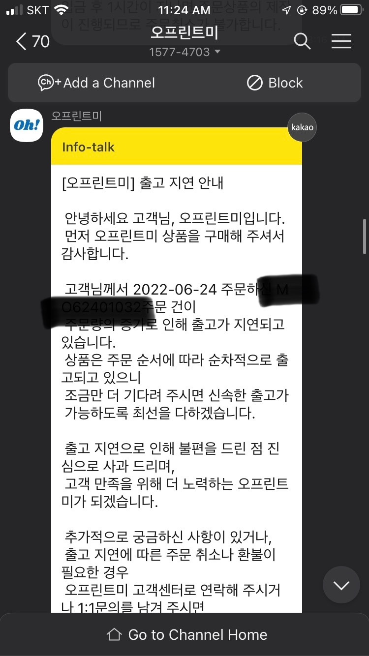 물론 항상 친절하게 출고가 지연되면 알림이 온다. 그리고 알림이 온 뒤 하루 이틀 내로 출고가 되긴 한다. 그러나 업체에서 제공해주는 출고 예정일은 웬만하면 안 믿는 게 좋고, 넉넉하게 +2일(영업일 기준)로 계획을 만드는 것을 추천한다.
