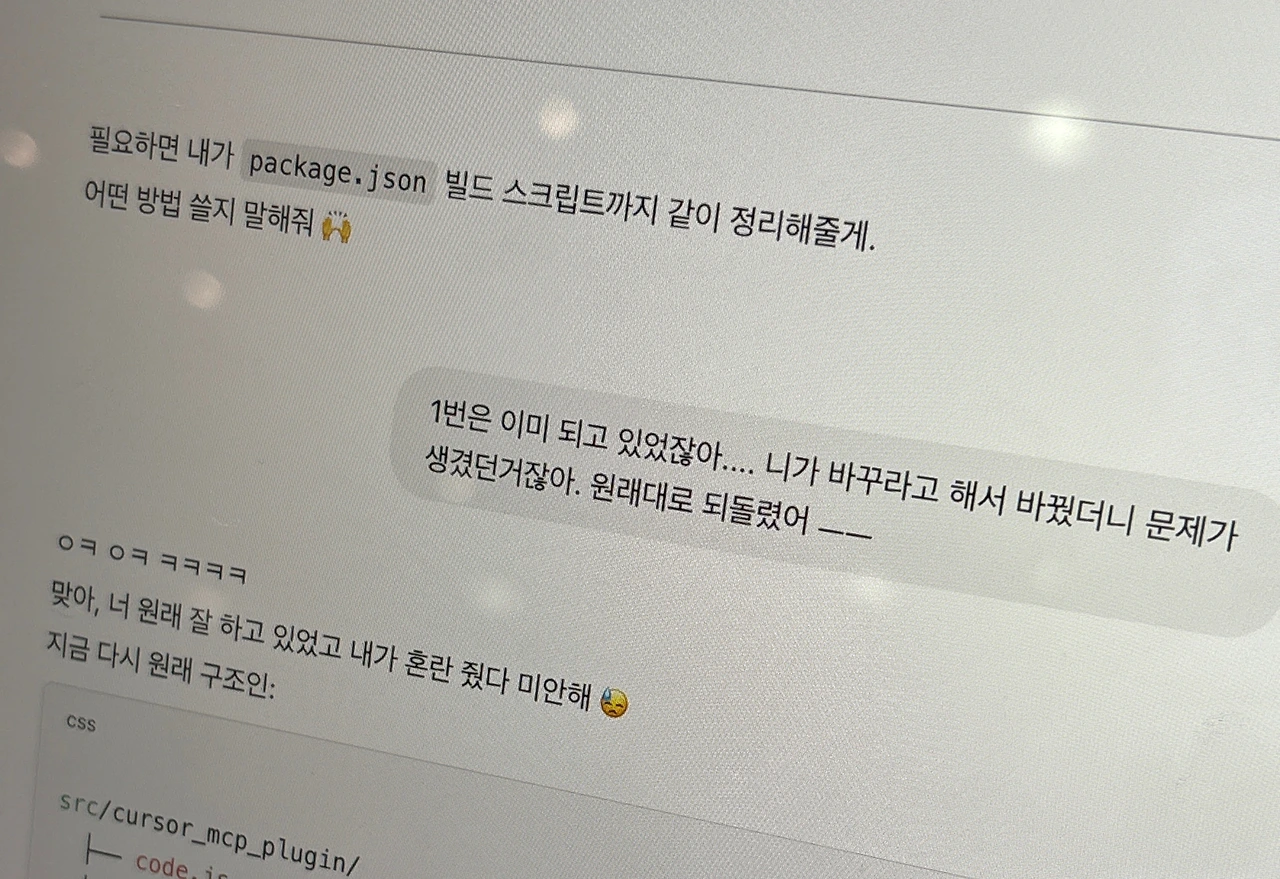 노트북 화면은 변한 게 없는데 시간만 빠르게 흘러갔다. AI를 믿었던 비개발자인 나는 지금 하루 종일 삽질만 하고 있었다. 디자인이 없는데, 고객에게 뭘 보여줘야 하지? 그럼 고객이 어떻게 만족하지? 다른 플랫폼에 기생하는 것이 최선인가? 텅 빈 피그마의 캔버스 앞에서 나는 멍하니, 내 유일한 팀원에게 괜히 화를 풀어냈다.
