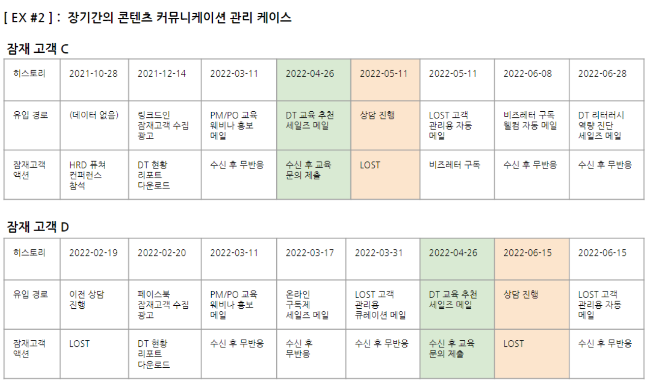 전환된 고객의 경로를 하나 하나 정리하면서 마케팅에서 도입 문의로 전환되는 경우의 수를 기록했습니다.