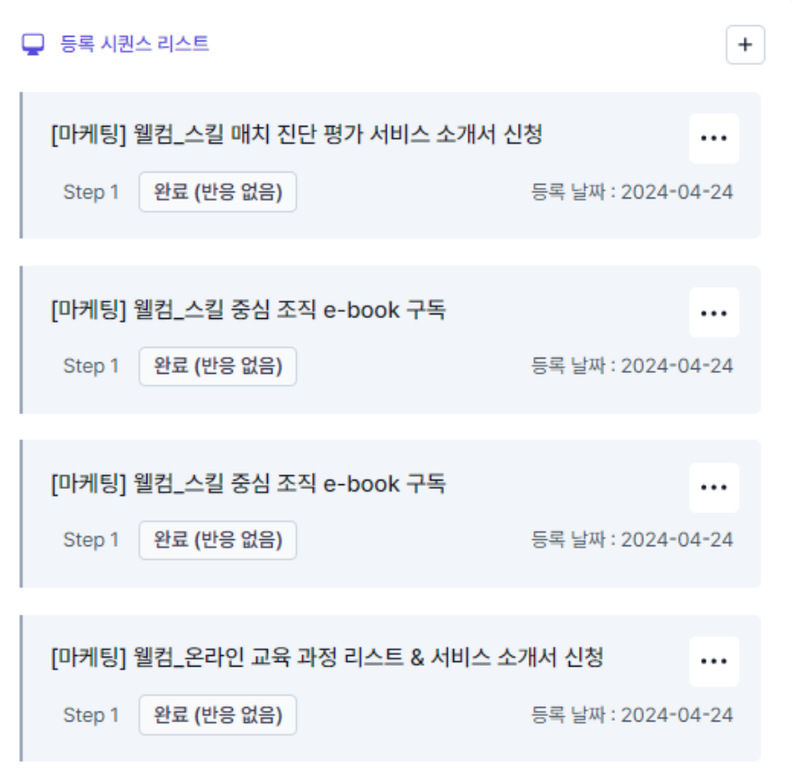 등록된 시퀀스(캠페인) 목록 : 고객이 받아 본 마케팅/세일즈 캠페인 히스토리를 확인해야 할 경우