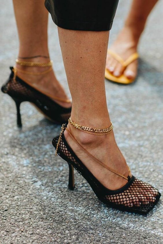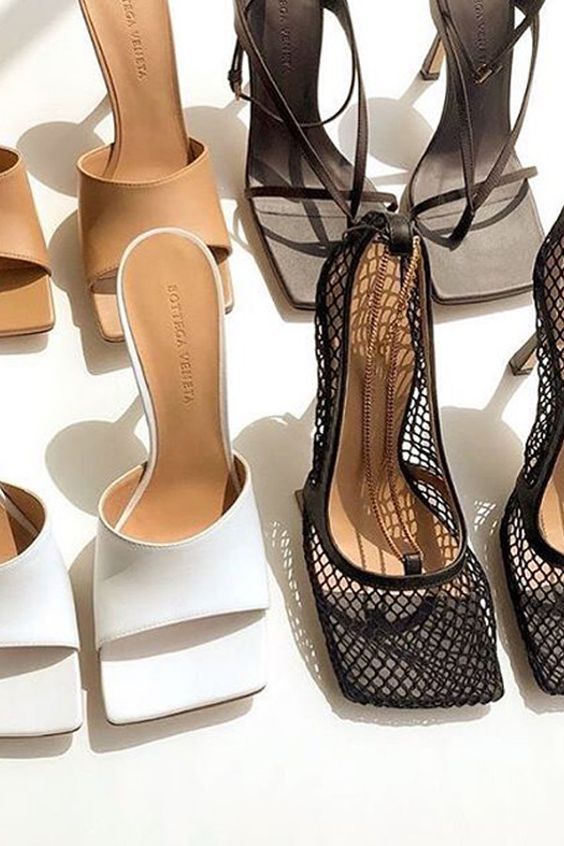 인턴 시절 가방뿐만 아니라 신발 중에도 없어서 못 파는 아이템들이 몇 가지 있었다. 이 글엔 소개하지 않은 아몬드 펌프스와 함께 정말 핫했던 그물 신발, 메쉬 체인 힐이다. 2019년부터 보테가베네타에서 스퀘어 토 신발을 꾸준히 만들고 있는데 이 신발은 작년에 처음 나와 지금까지도 인기가 있는 신발이다. 뉴 보테가베네타의 구두 밑창엔 거의 대부분 아래 사진 처럼 미끄럼 방지 고무 밑창이 덧대어져 있어 보기와는 다르게 편하다고 한다(안 신어봐서 나는 모름).